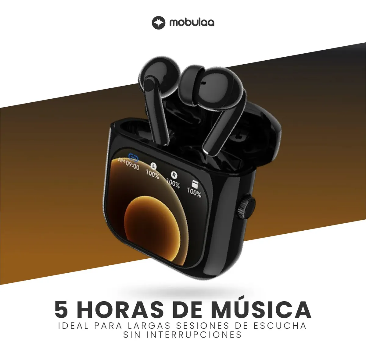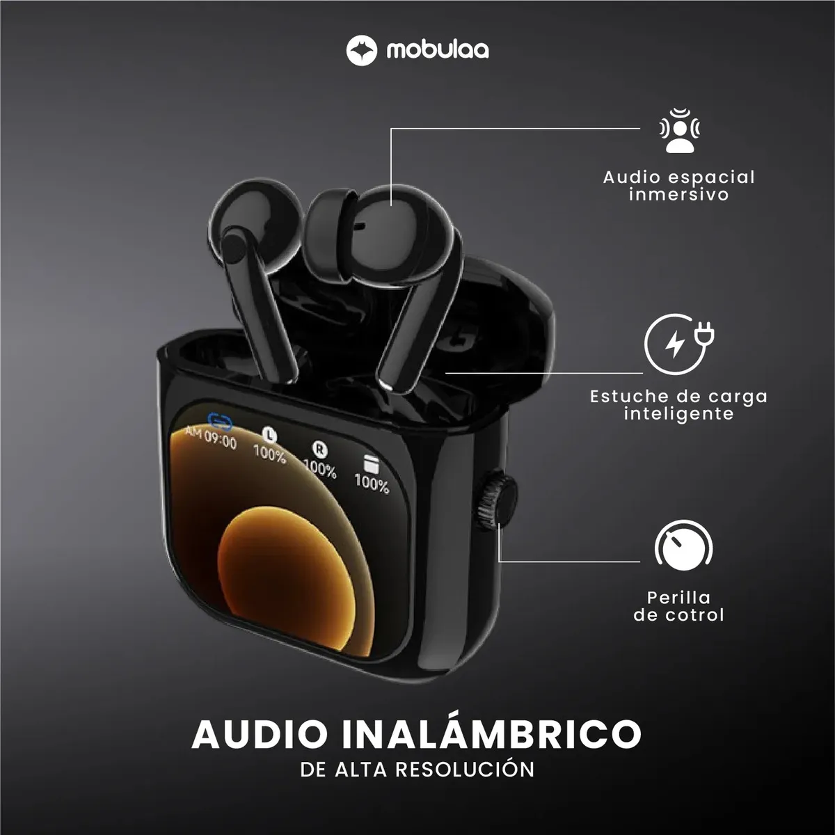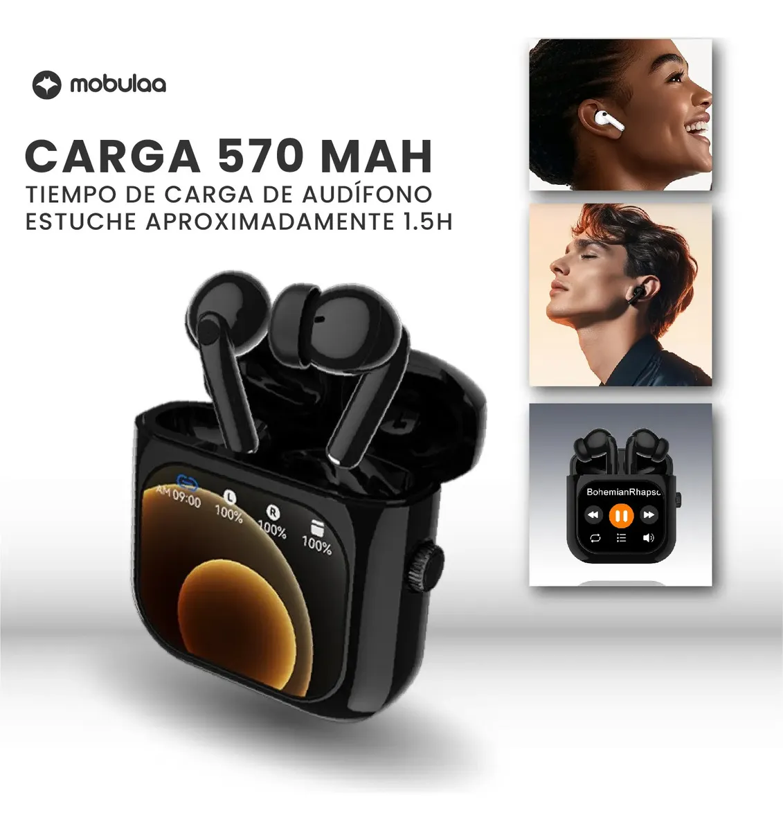 Los nuevos Mobulaa AuraFit X6 revolucionan tu experiencia auditiva con el primer estuche de carga inteligente equipado con una pantalla táctil a color. Control total, sin distracciones.