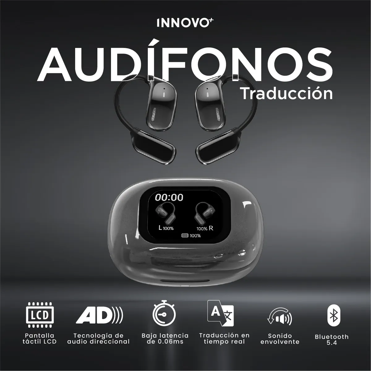 Los nuevos Innovo+ no son solo audífonos premium; son tu traductor personal inteligente capaz de interpretar más de 100 idiomas de manera simultánea.