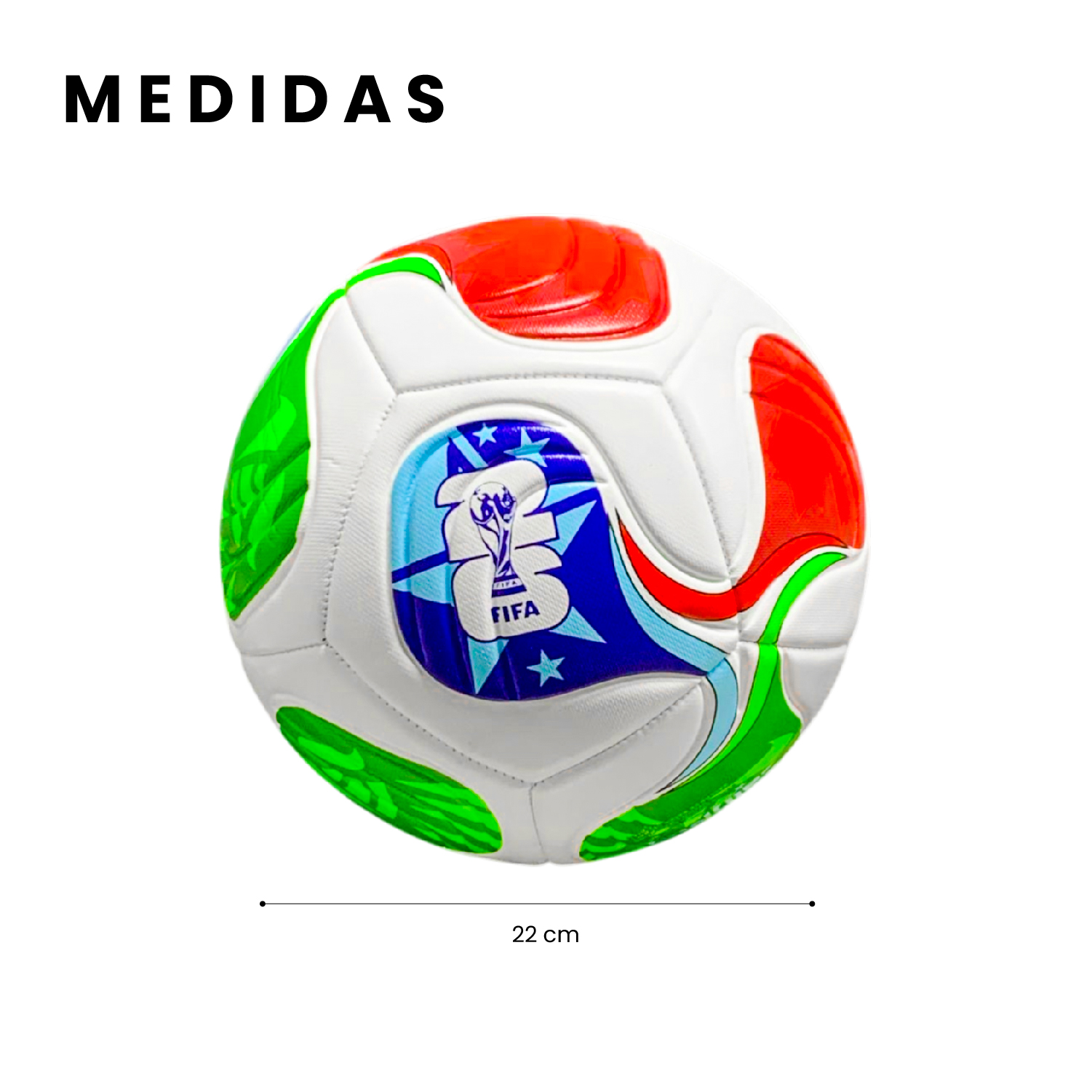 Diseño Vanguardista: Con los colores vibrantes y la simbología oficial que representa la unión de las sedes del próximo mundial. ¡Un diseño que roba miradas!