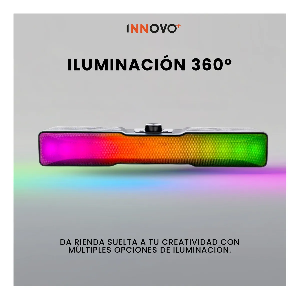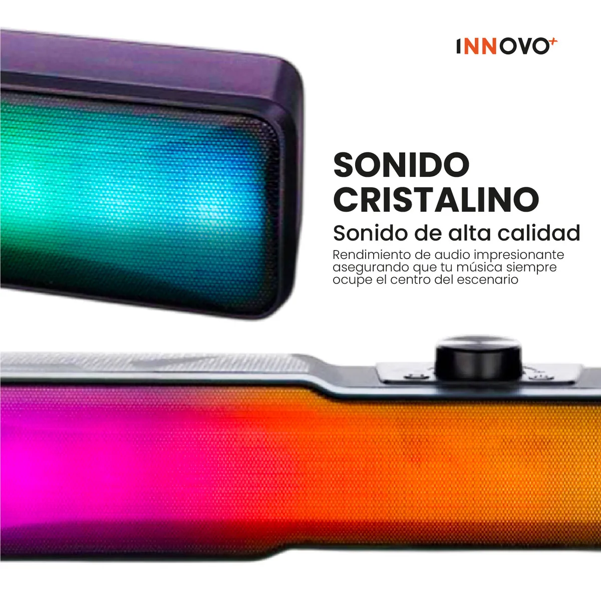 Olvida las luces estáticas. Su panel frontal cuenta con tecnología dinámica que baña tu escritorio o sala con un espectro de colores vibrantes, creando un ambiente épico para jugar o ver películas.