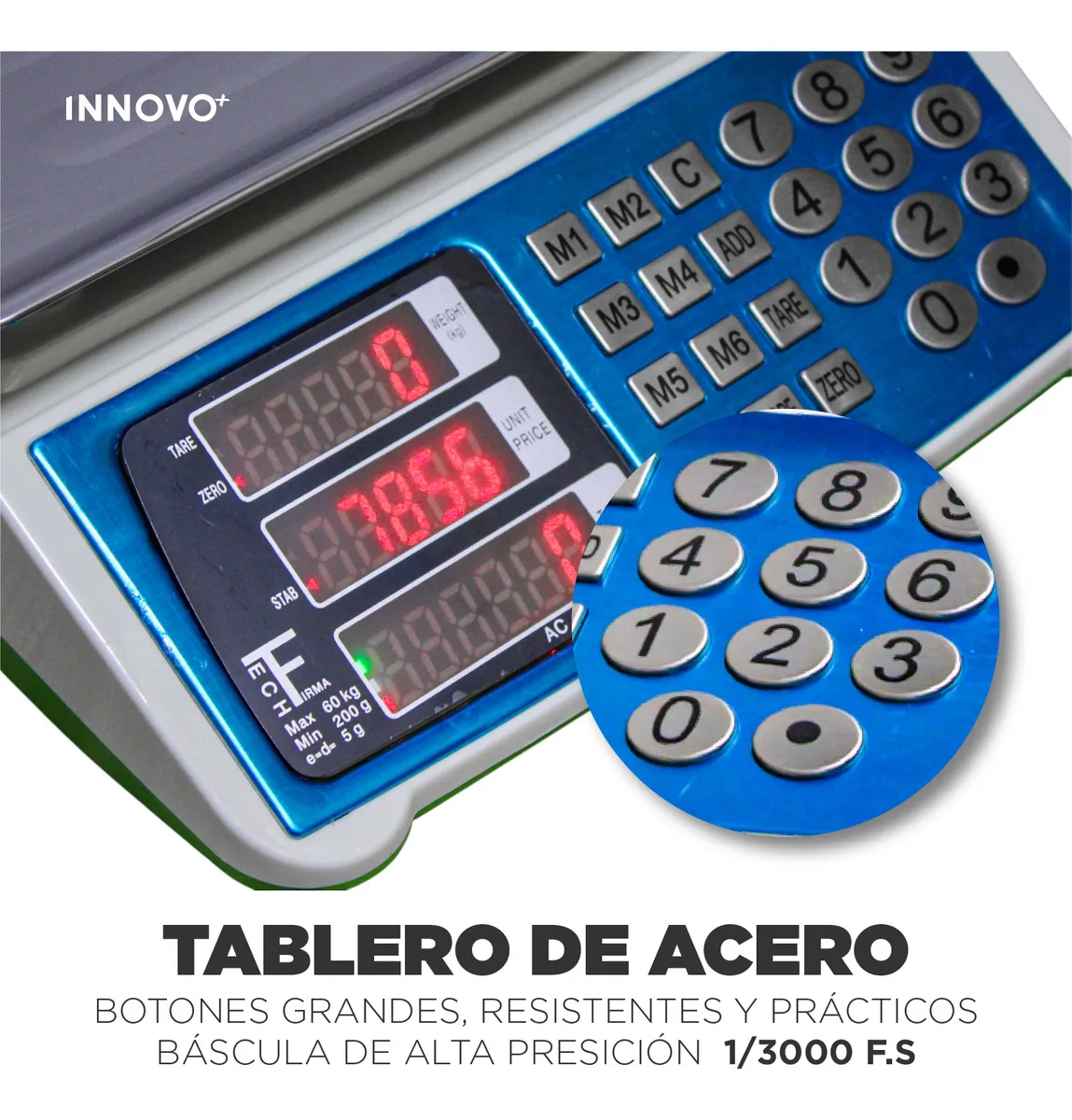 ¿Buscas confianza y rapidez en tus ventas? Esta báscula no solo pesa, es una herramienta diseñada para el trabajo pesado y la atención ágil al cliente. Gracias a su capacidad de 60kg y su división de escala de 5g, tendrás la precisión exacta que tu negocio necesita.