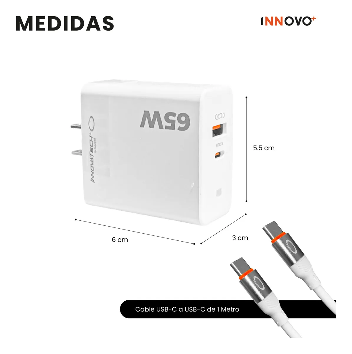 Cargador Rápido Gan 65w Innovatech Gt Onyx | Pd + Qc 3.0 Turbo Charge