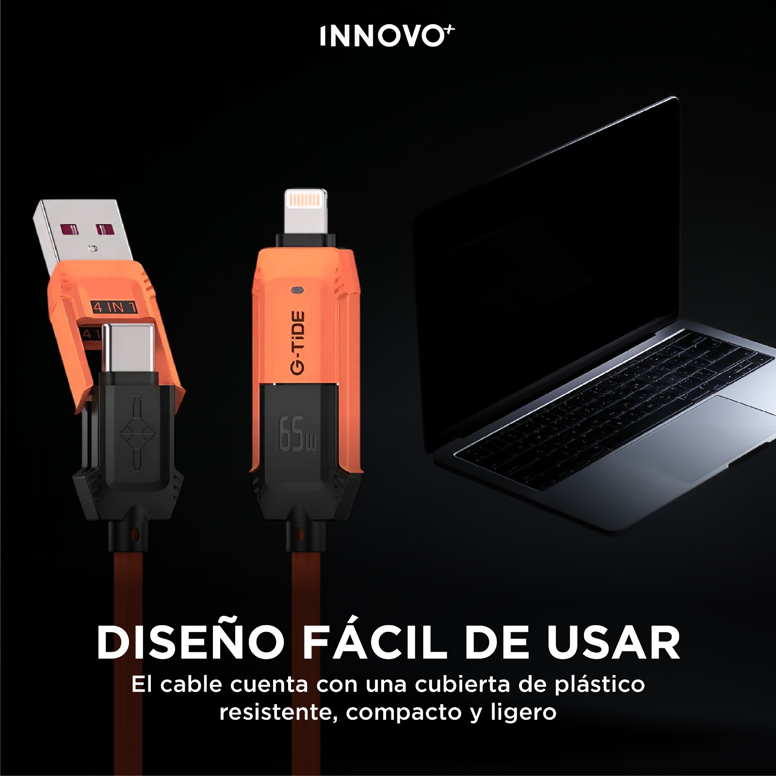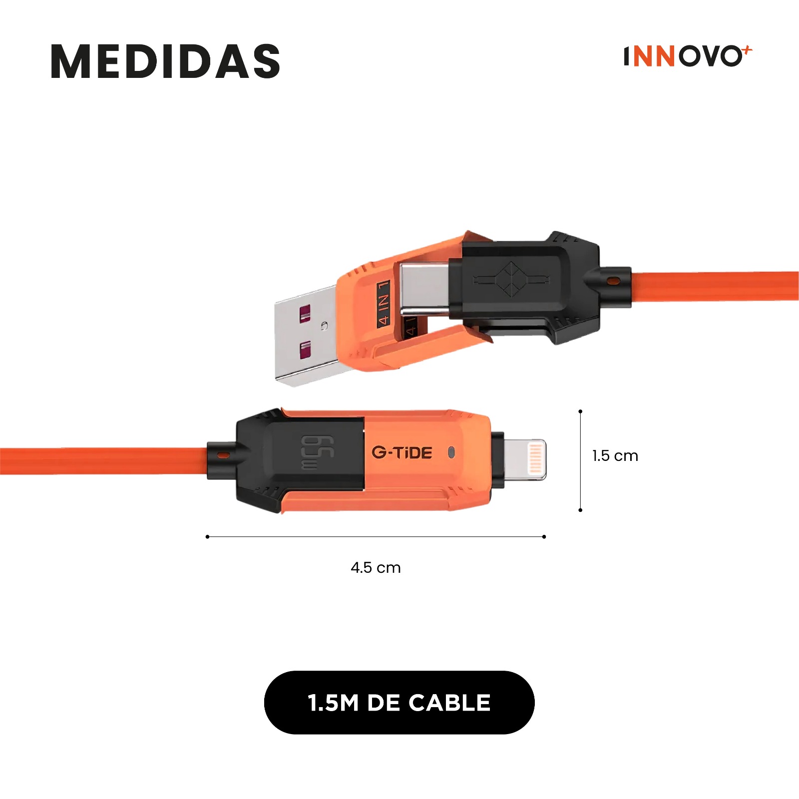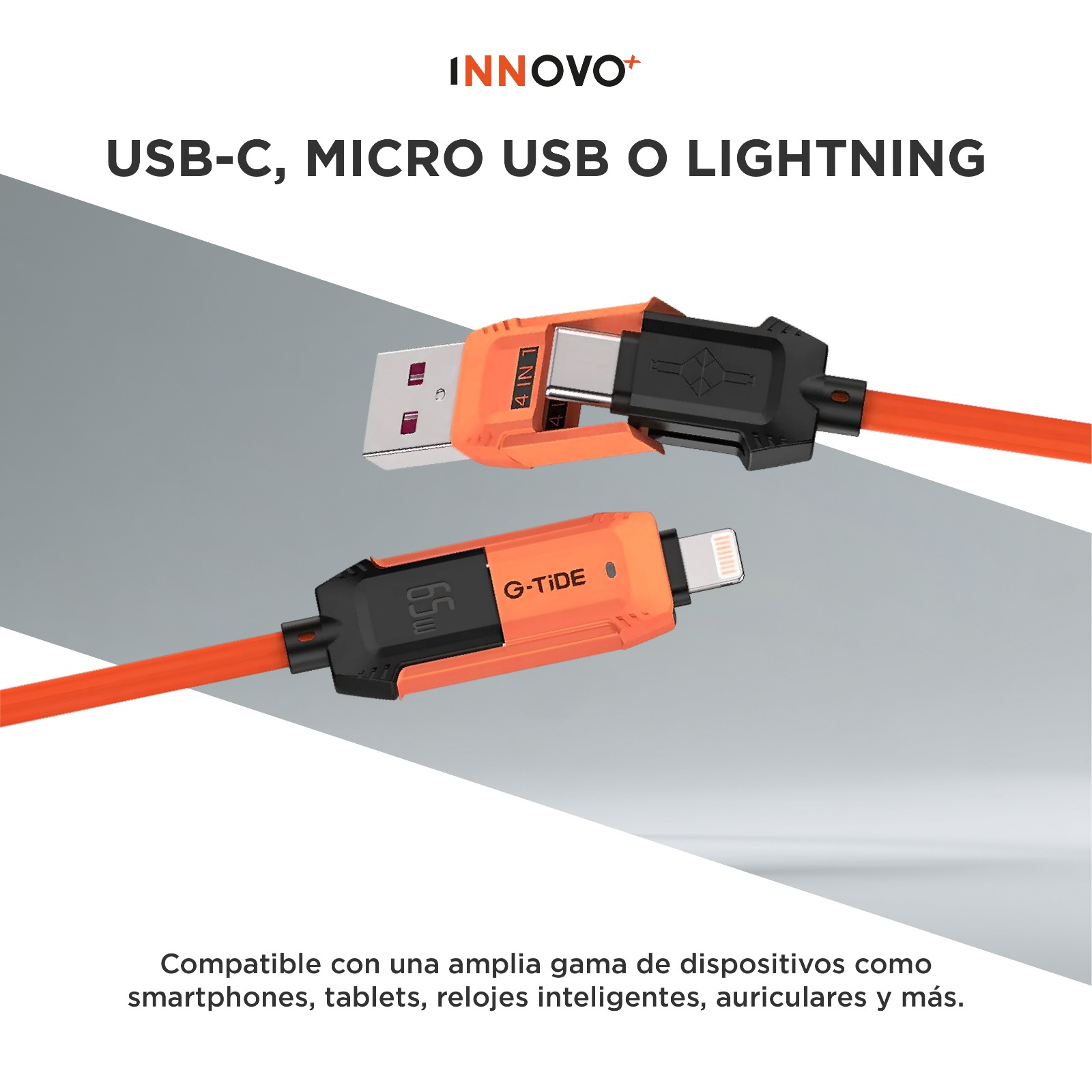 Cable De Carga Universal 4 En 1 G-tide 65w Carga Rápida Usb-c Micro 1.5m Naranja