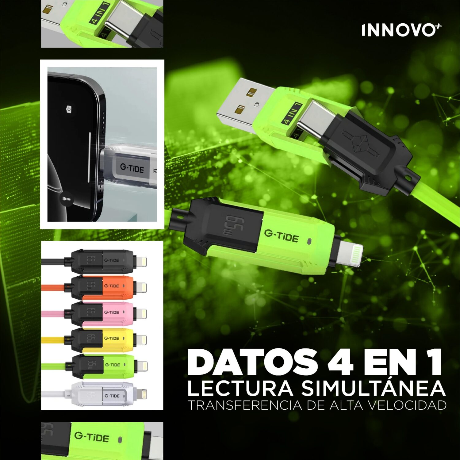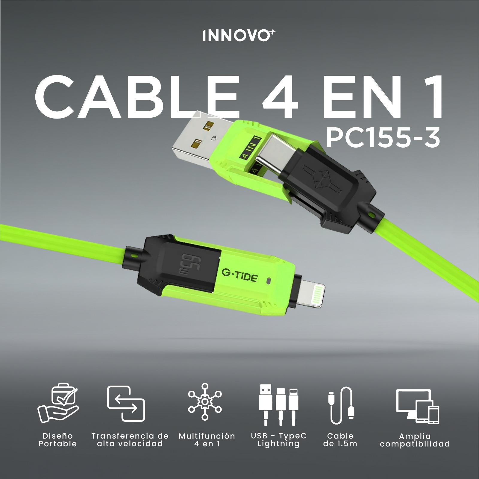 Cable De Carga Universal 4 En 1 G-tide 65w Carga Rápida Usb-c Micro 1.5m Verde