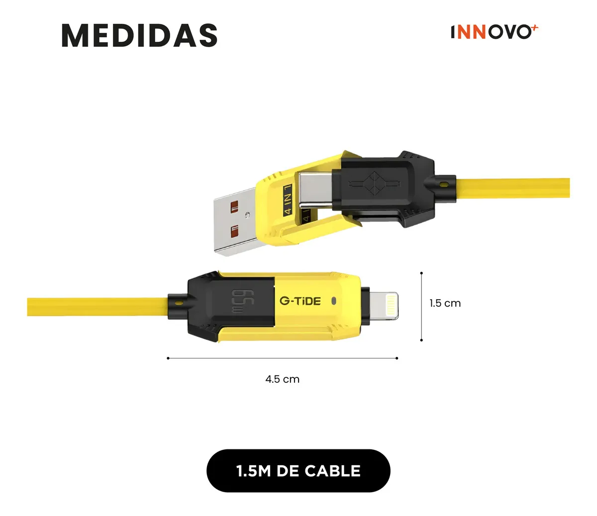 ¿Cansado de cargar con mil cables diferentes? Simplifica tu día a día con el cable G-Tide PC155-3, la solución definitiva de carga y transferencia de datos. Diseñado para ser el único cable que necesites en tu mochila, oficina o auto.