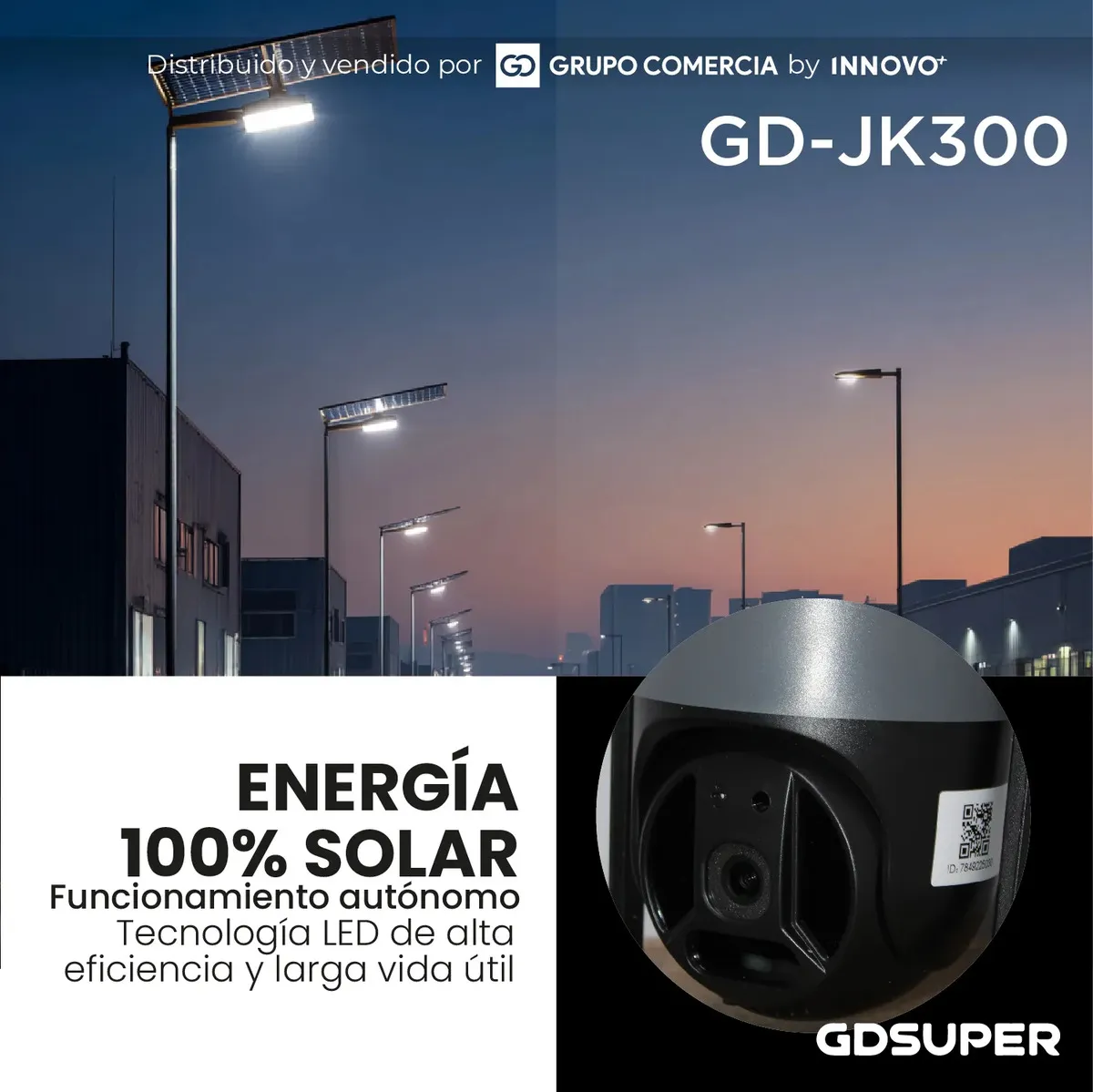 Llegó la evolución en iluminación y vigilancia exterior. El GDSUPER GD-JK300 no es un simple reflector; es un sistema de seguridad inteligente integral que funciona 100% con energía solar. Olvídate de cables complicados, contratos mensuales de seguridad y gastos eléctricos.