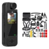 Incluye arnés de pecho, soporte de casco, tripié, correa de muñeca, flotador, soportes adhesivos, estuche rígido y más.