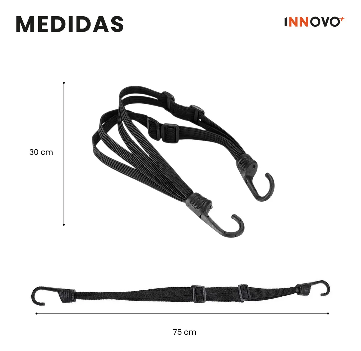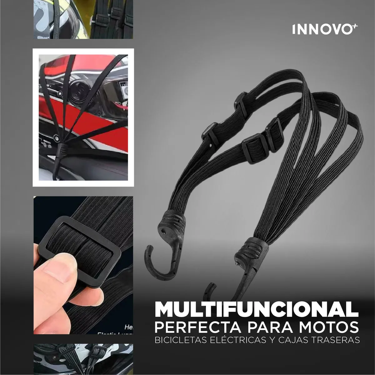 Correa ajustable: Permite adaptar la tensión y tamaño según casco, maletas, paquetes o carga.