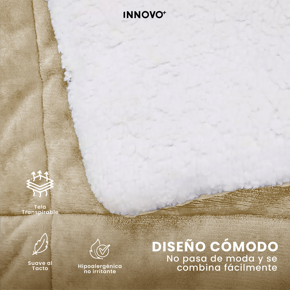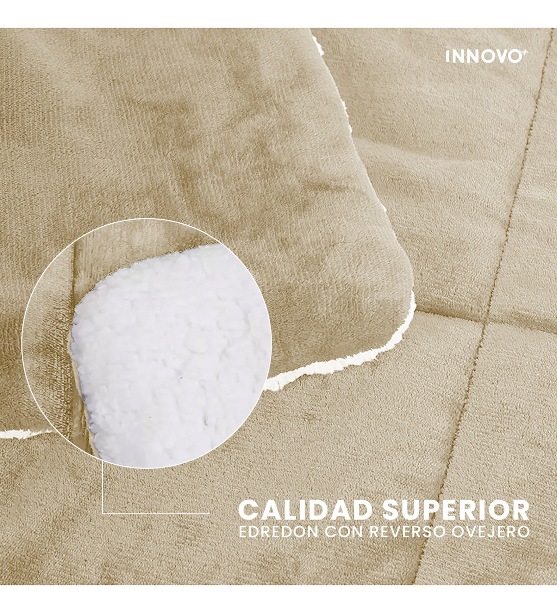 Descubre el edredón reversible Innovo+ para cama Queen, diseñado con microfibra de lujo y un cálido forro tipo ovejero que brinda máximo confort durante las noches frías. Su textura suave al tacto, diseño moderno y colores sobrios lo convierten en el complemento perfecto para cualquier habitación.