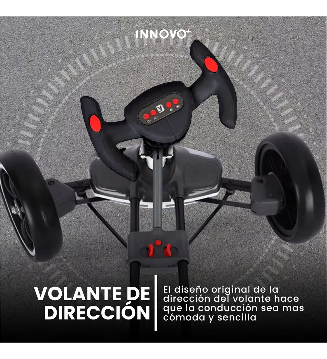 El Go Kart Innovo+ incorpora batería recargable, estructura reforzada en acero liviano y un mecanismo de seguridad para un manejo tranquilo y confiable. Perfecto como regalo para cumpleaños, Navidad o cualquier ocasión especial.