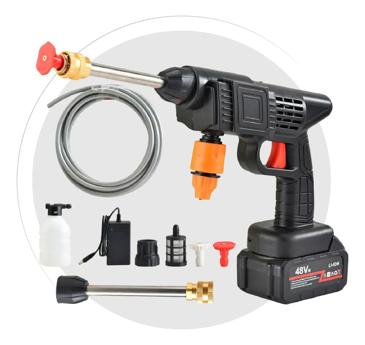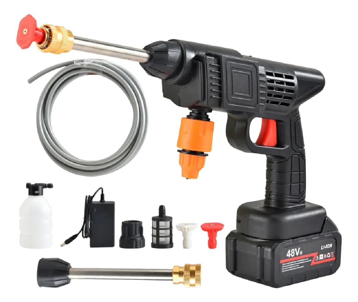 Hidrolavadora Inalámbrica Portátil 48v + 2 Baterías Y Accesorios 6 Chorros 110v 110v