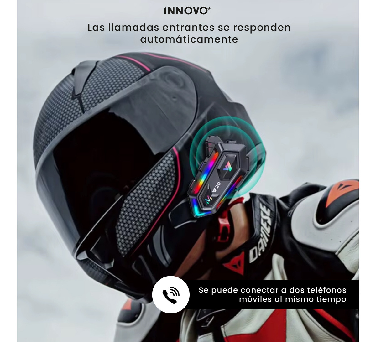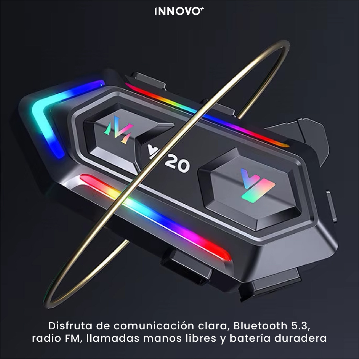 Lleva tu experiencia en carretera a otro nivel con el Intercomunicador Bluetooth para Casco de Moto Innovo V20, diseñado para brindarte comunicación clara, seguridad y entretenimiento sin distracciones mientras conduces.