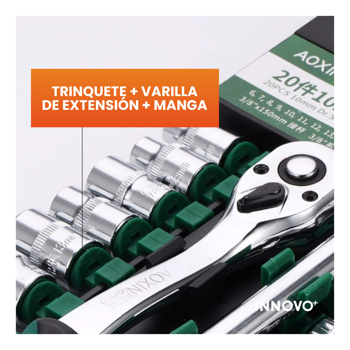 Este set completo está diseñado para satisfacer las necesidades de talleres, profesionales y uso hogareño. Incluye una selección variada de copas y tamaños, lo que te permitirá realizar múltiples tareas con facilidad y precisión.