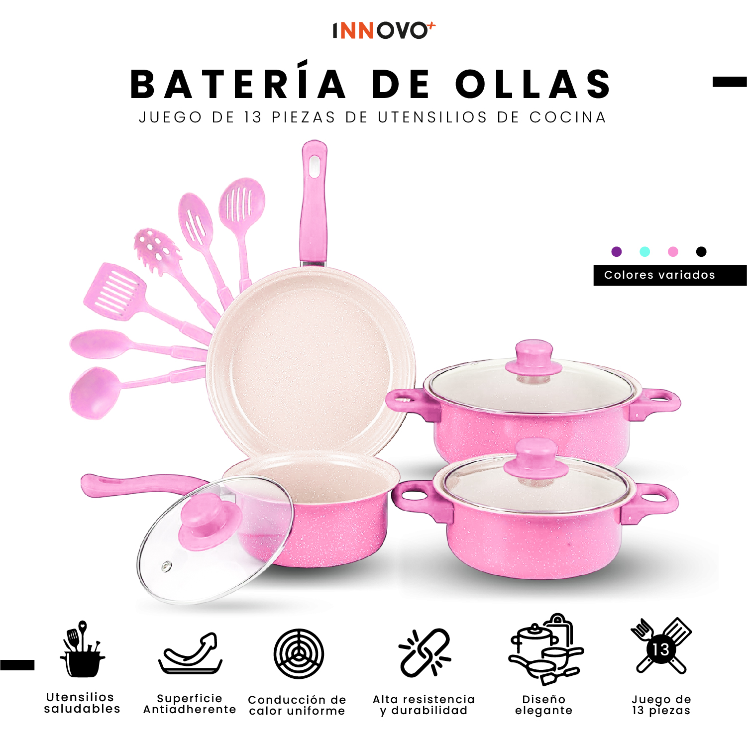 Juego de Ollas y Utensilios de Cocina – Set Completo de 13 Piezas con Tapas, Sartén y Utensilios Antiadherentes
