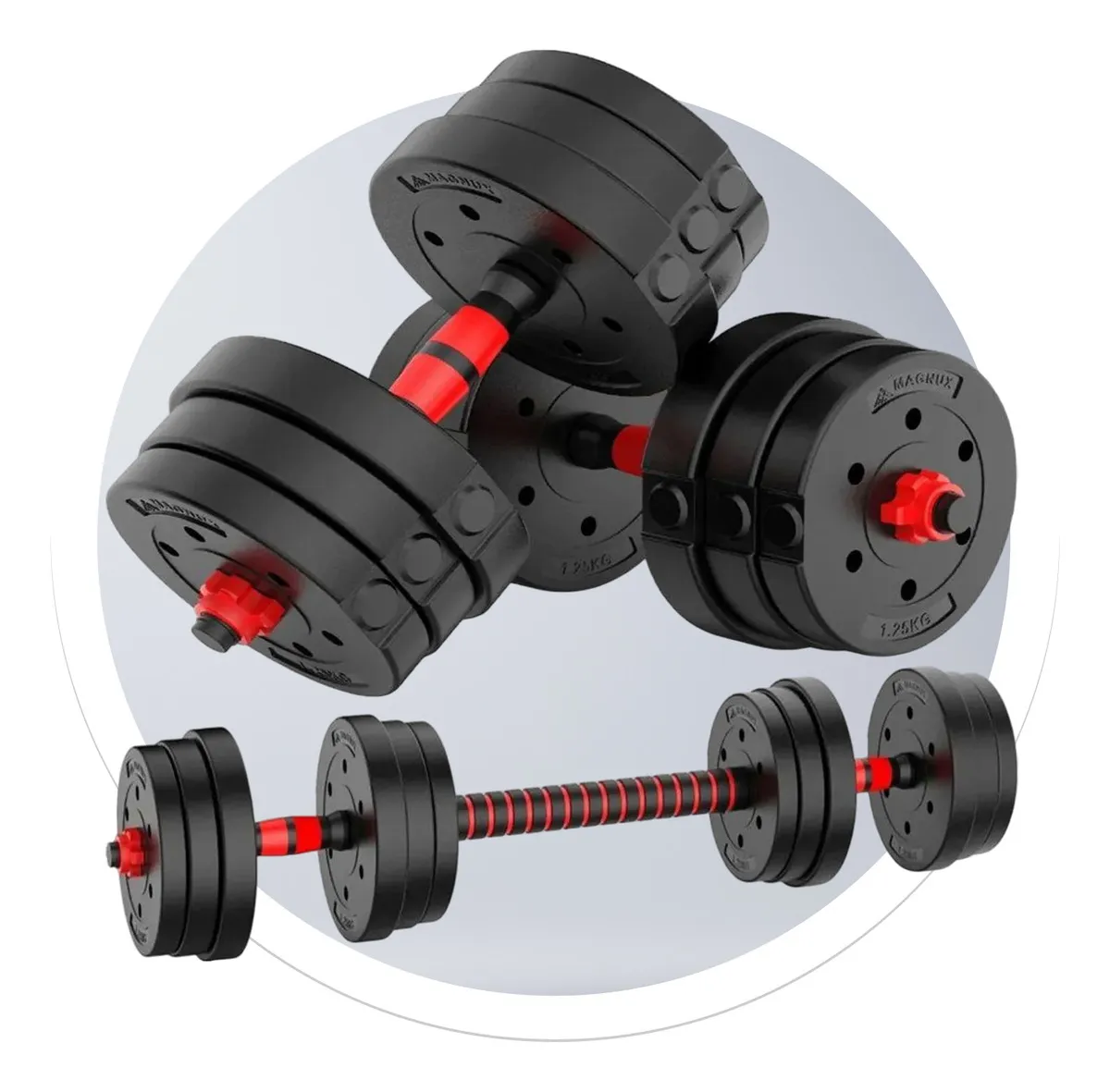 ¿Buscas maximizar tus resultados sin salir de casa? El Kit de Mancuernas Ajustables 2 En 1 es la solución definitiva para tu entrenamiento de fuerza. Gracias a su innovadora barra conectora, puedes pasar de un par de mancuernas a una barra larga de pesas en segundos, permitiéndote realizar una variedad infinita de ejercicios para bíceps, tríceps, espalda, pecho y piernas.