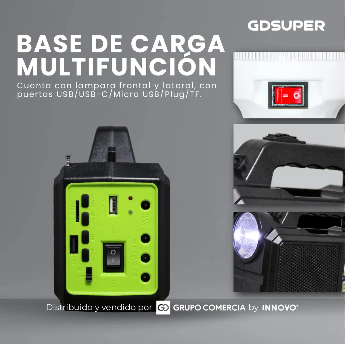 ¿Cansado de quedarte a oscuras o sin batería cuando más lo necesitas? Presentamos la Estación Solar Multifunción GDSUPER GD-8077, el aliado definitivo para los amantes del camping, las reparaciones nocturnas y, sobre todo, para estar siempre preparado ante cualquier corte de luz en casa.
