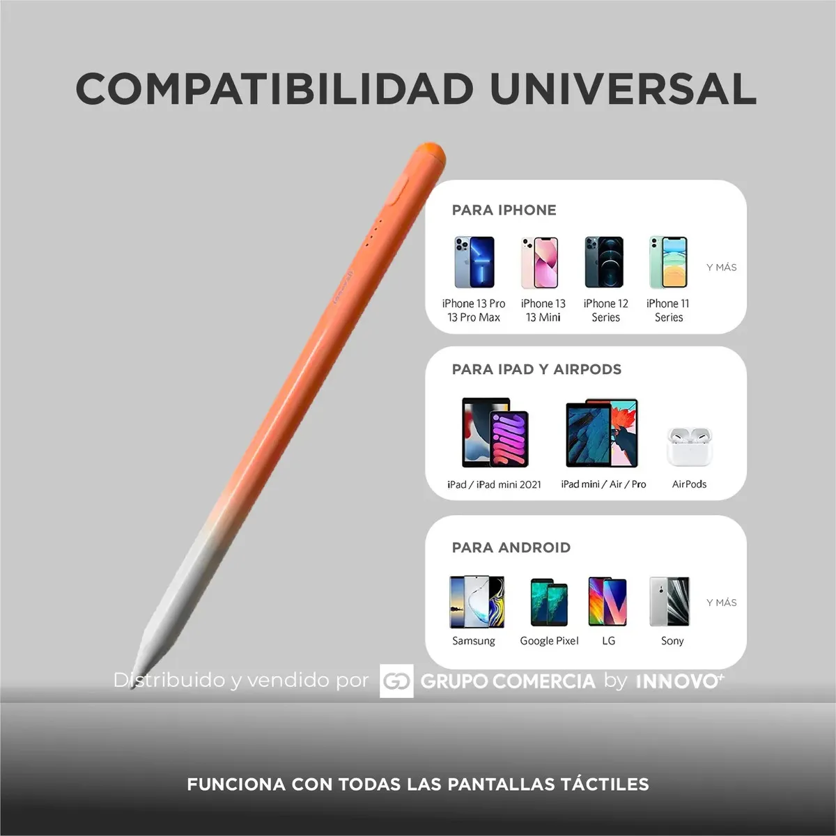 Diseño Inteligente: Su acabado en degradado naranja-blanco no solo es estético, sino que su cuerpo permite una adherencia magnética a tu tablet para que nunca lo pierdas.