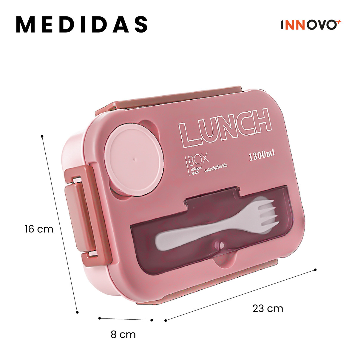 Lleva tus comidas de forma práctica, segura y organizada con esta lonchera térmica hermética de 1300ml. Diseñada con 4 compartimentos para separar tus alimentos, evitando derrames y mezclas no deseadas. Ideal para la oficina, colegio, viajes o picnic, gracias a su tamaño compacto y tapa con cierre seguro.