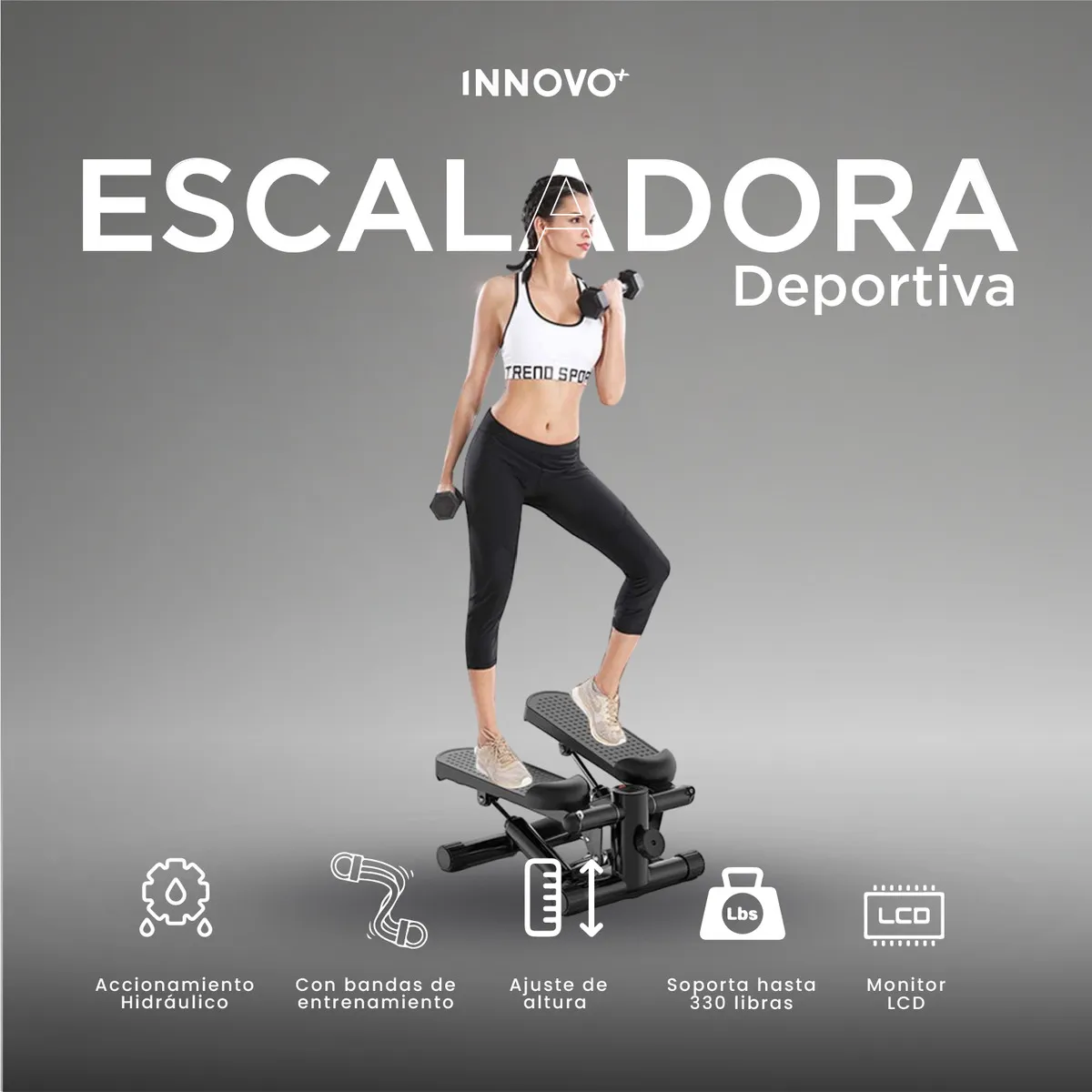 Transforma tu rutina desde casa con la Mini Escaladora Deportiva Innovo+, el equipo compacto que está revolucionando el entrenamiento en el hogar.