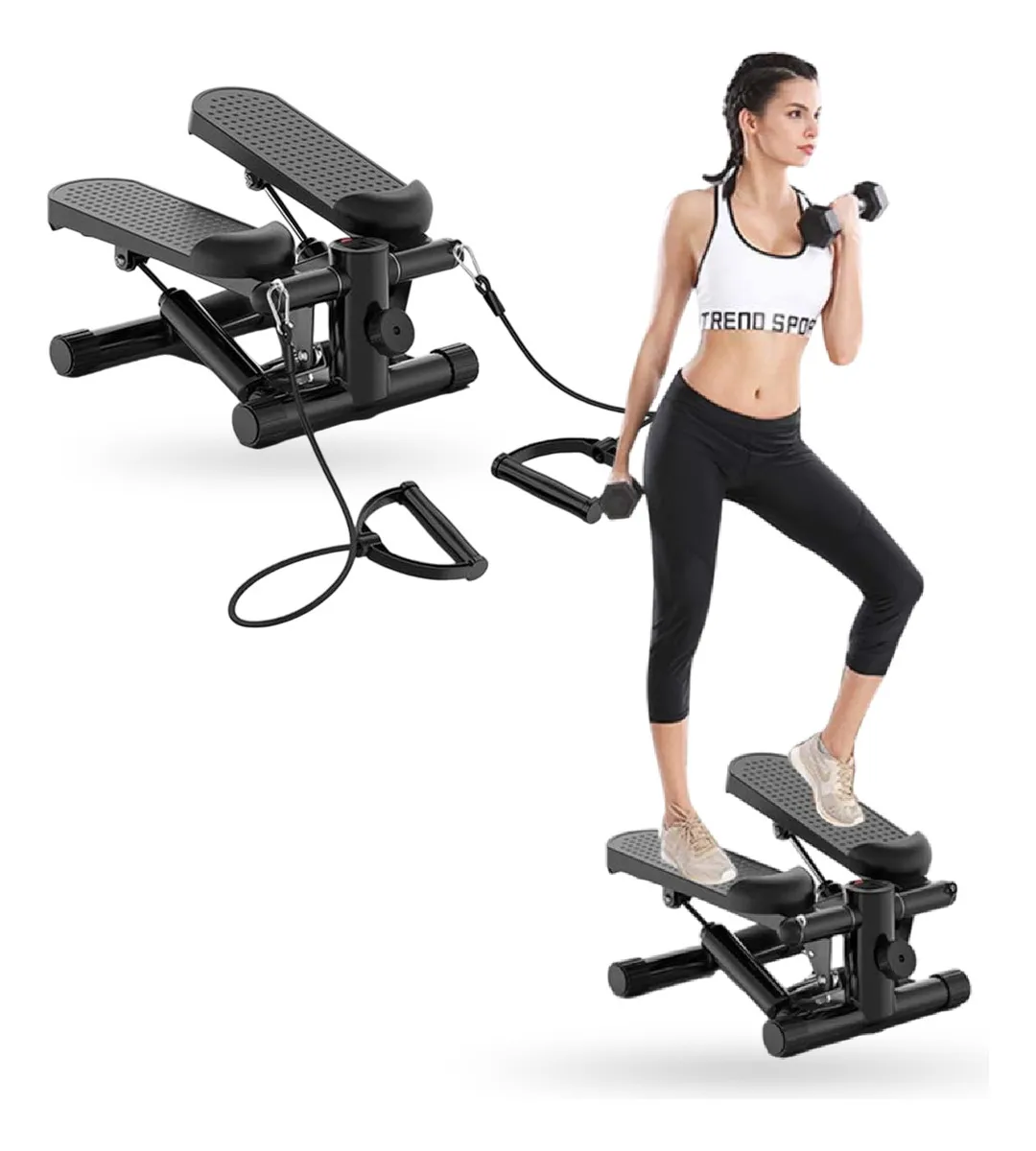 Su sistema de accionamiento hidráulico de alta resistencia ofrece un movimiento fluido y estable, ideal para quemar calorías, mejorar la condición física y tonificar todo tu cuerpo. Además, incluye bandas elásticas para trabajar tren superior, logrando un ejercicio totalmente integral.
