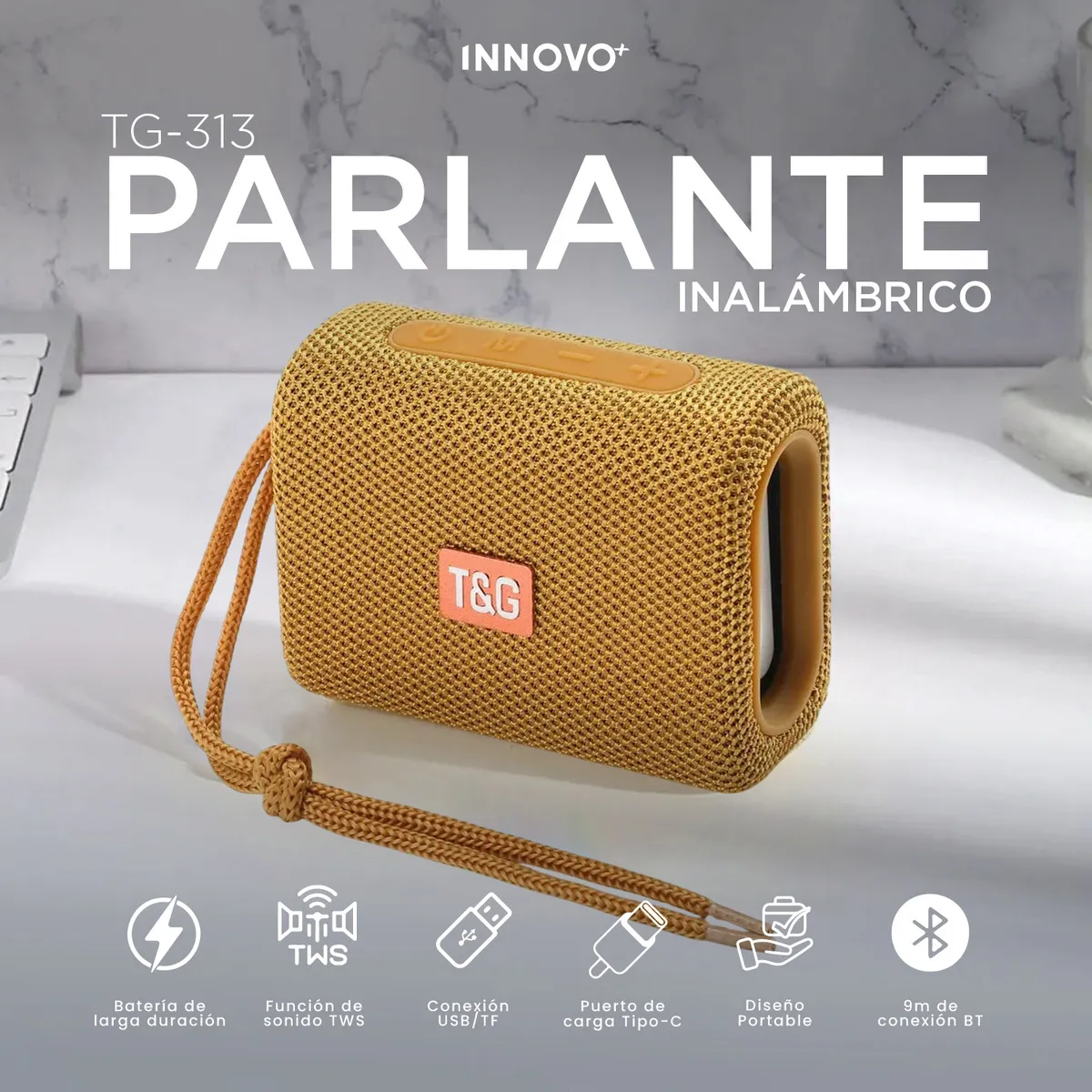 ¿Buscas un sonido nítido, potente y que quepa en tu mochila? El Parlante Inalámbrico TG-313 es el compañero ideal para tus viajes, salidas al aire libre o simplemente para disfrutar en casa. Con su diseño ultra portátil y su acabado en tela tejida, no solo suena increíble, ¡se ve genial!