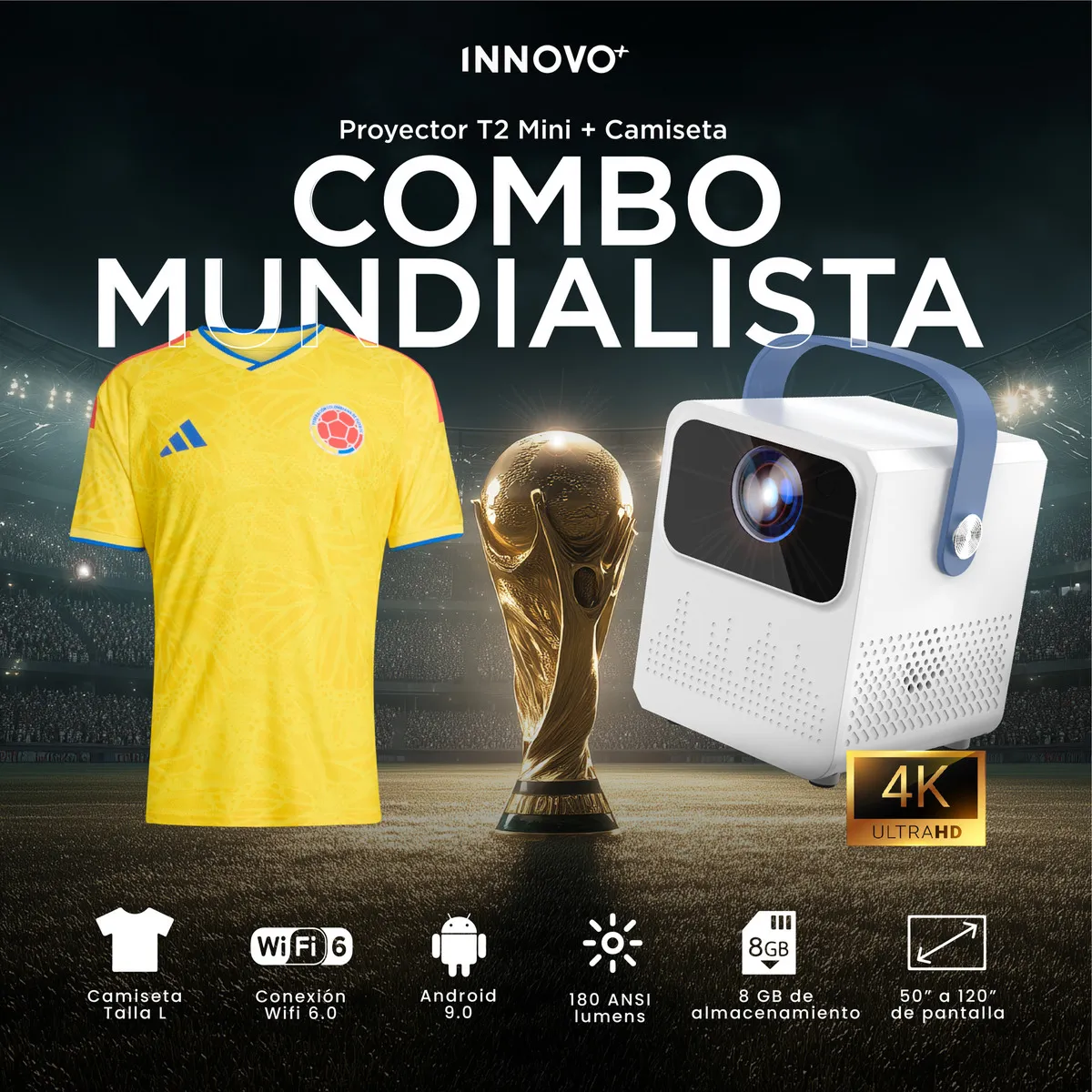 Mini Proyector Inteligente T2 Smart Android 4k Wifi 6 Obsequio Camiseta Colombia