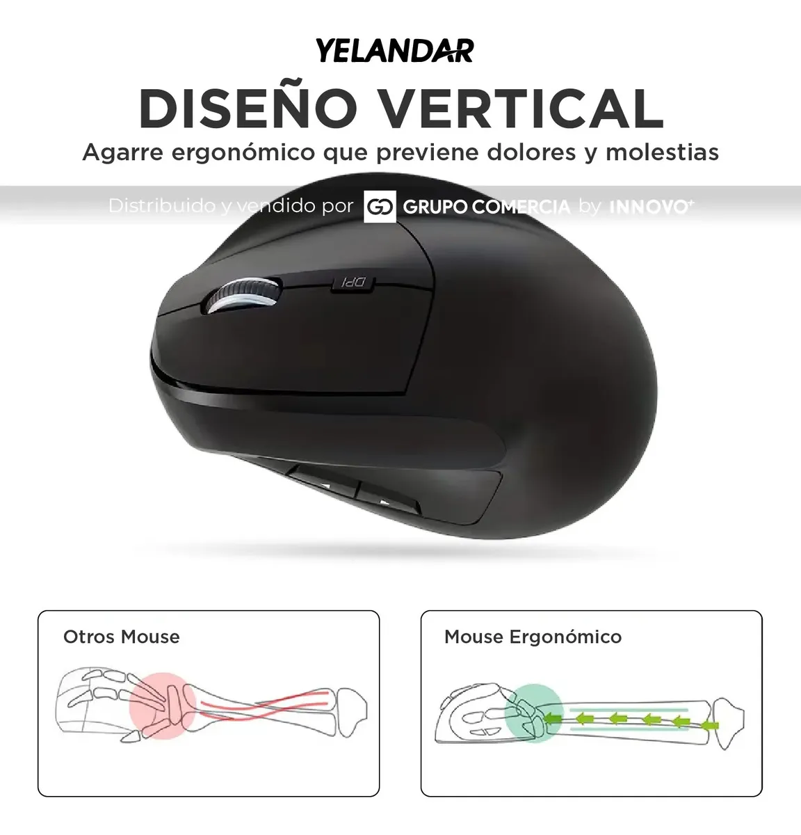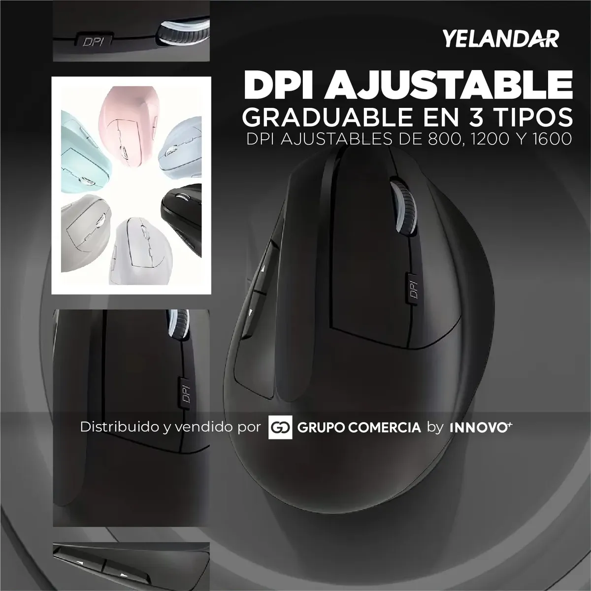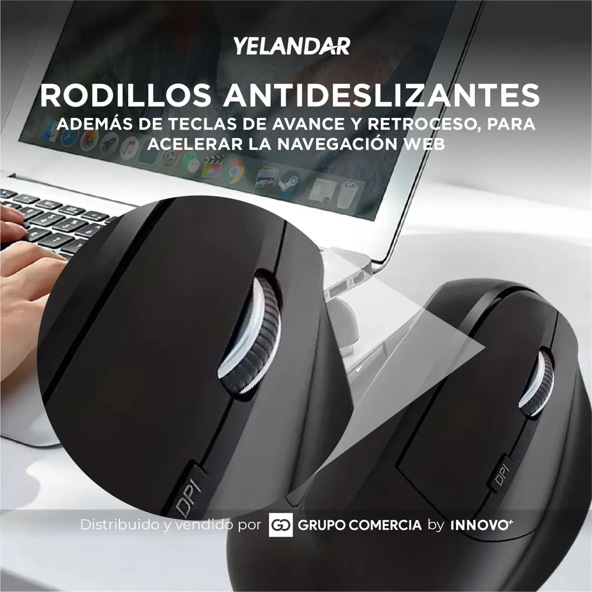 Mouse Ergo Vertical Yelandar Pro Conexión Inalámbrico Dual Negro Negro