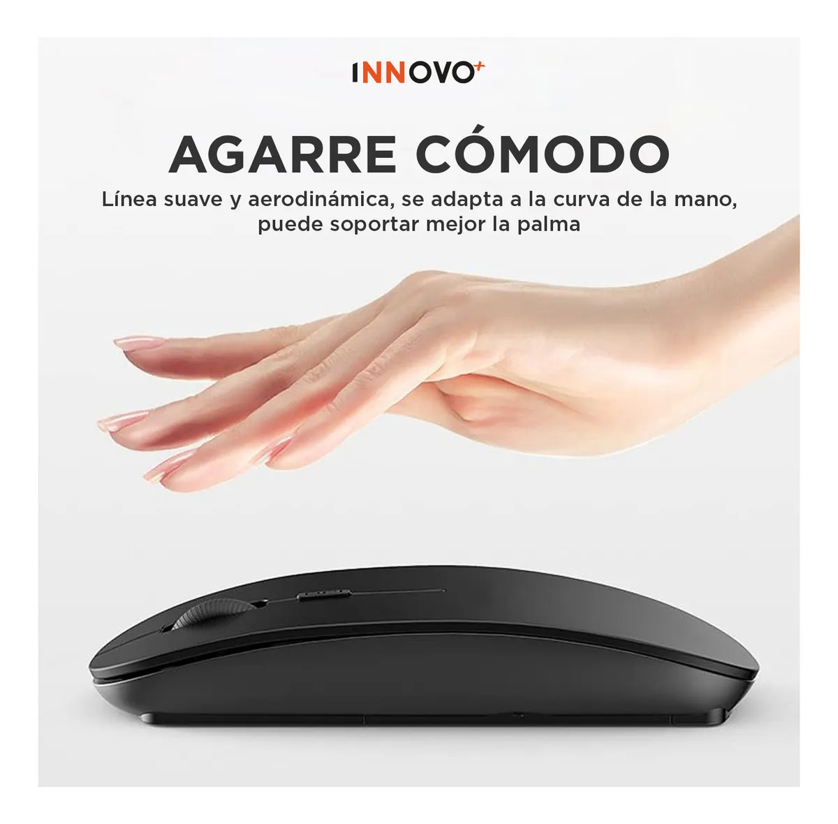 Eleva tu productividad con el Mouse Inalámbrico Innovo+, un dispositivo diseñado para ofrecer máxima comodidad, precisión y portabilidad. Su diseño ultradelgado y ergonómico lo convierte en el compañero perfecto para oficina, estudio, viajes o teletrabajo.