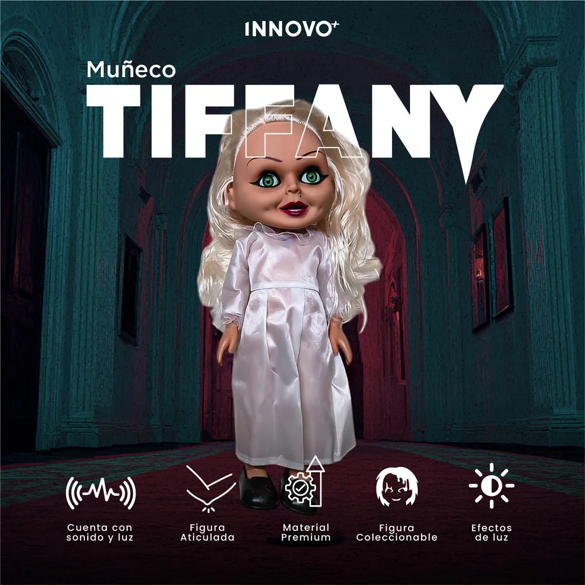 Si eres fan del horror, del universo de Chucky o simplemente buscas una figura que impacte, esta Muñeca Tiffany de 33 cm con sonido y luz será la pieza estrella de tu colección.