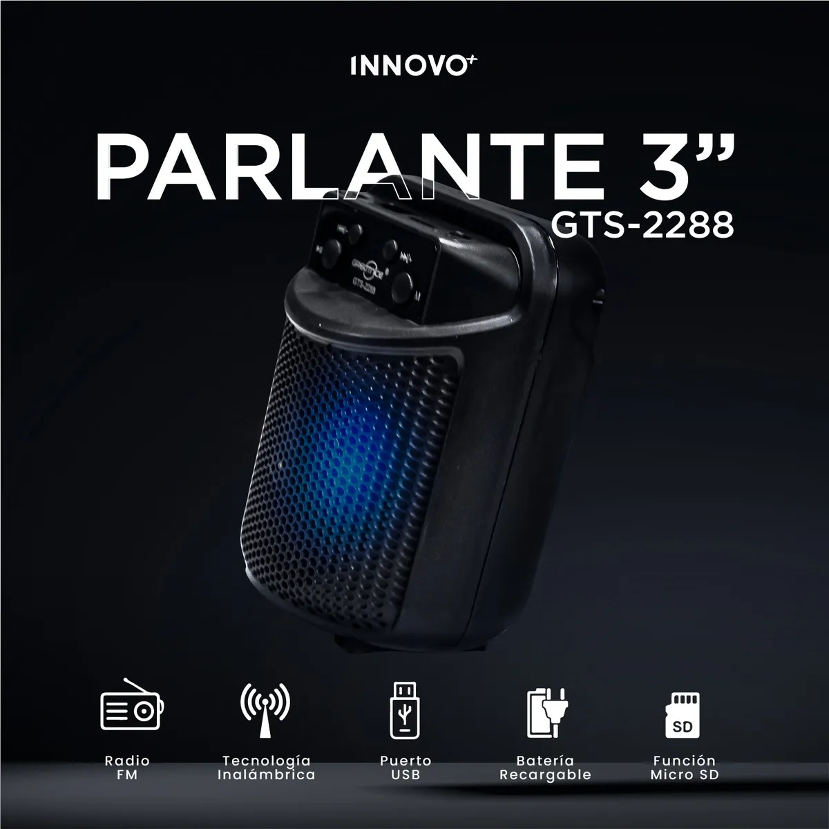 Parlante Bluetooth 3 Gts-2288 Recargable Radio Fm Usb Negro 110v
