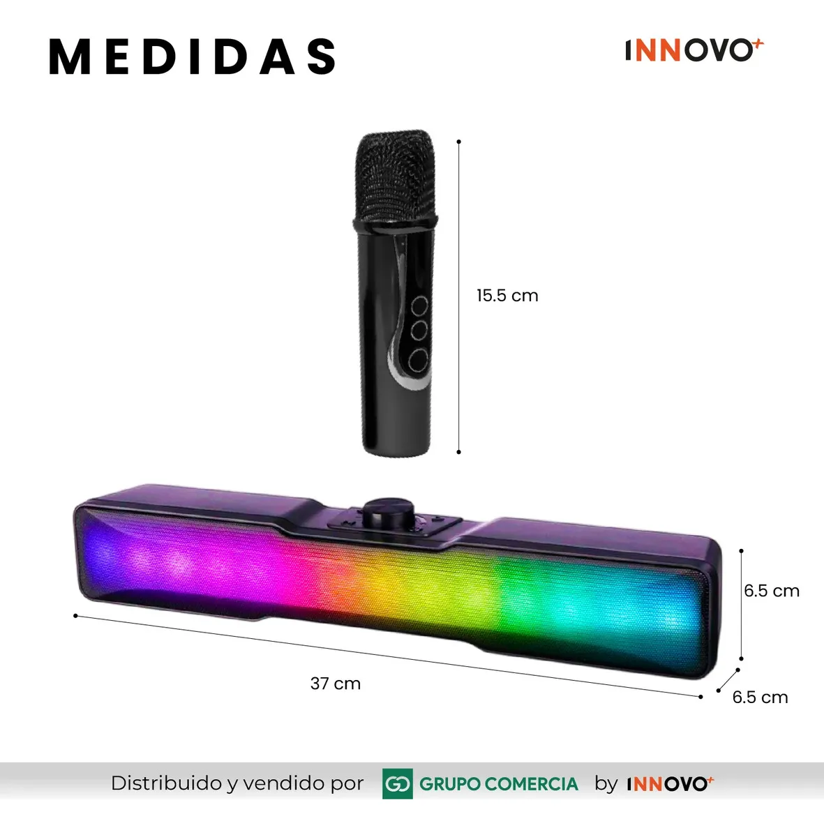 Dimensiones Parlante: 37 cm x 6.5 cm x 6.5 cm (Perfecto para colocar bajo el monitor o TV).