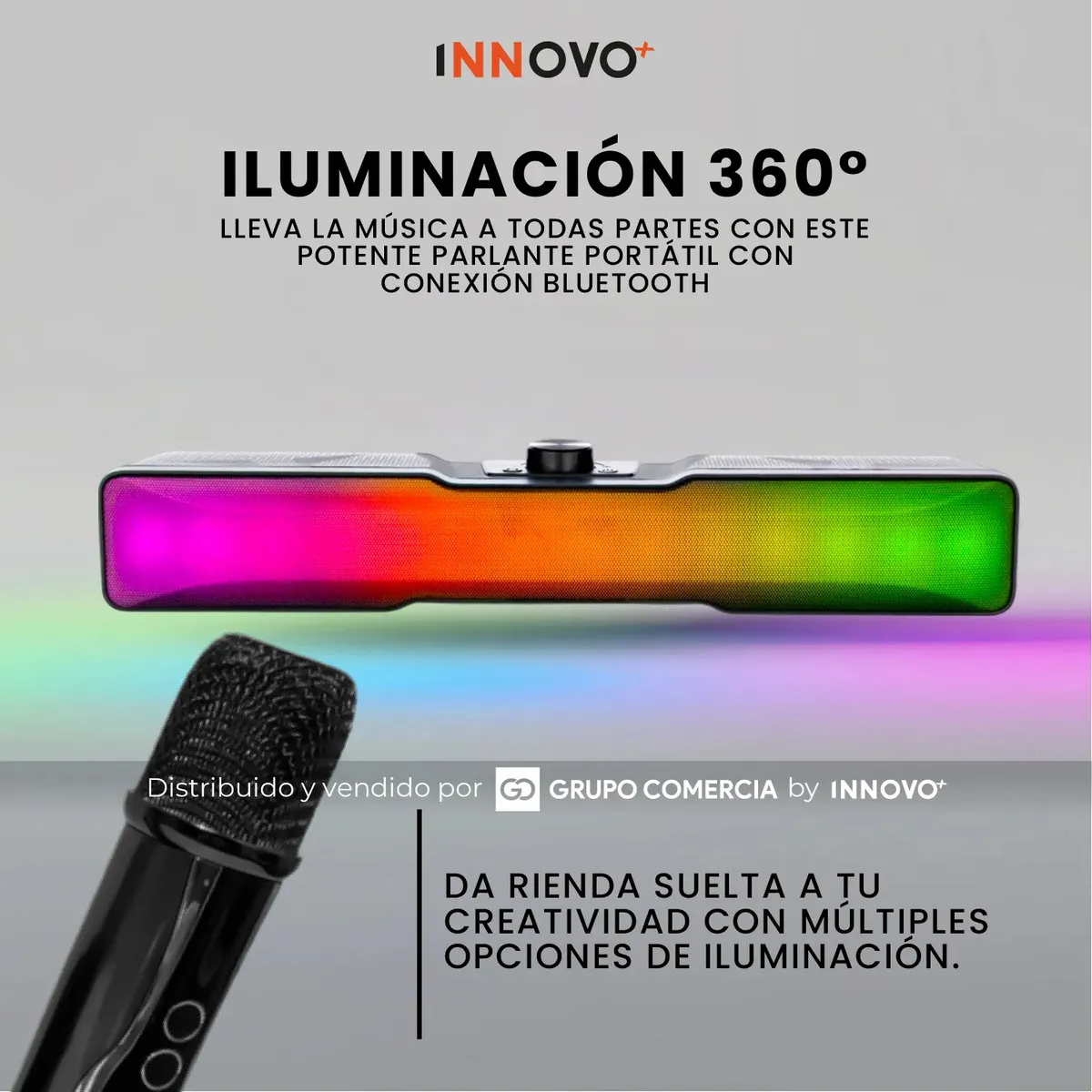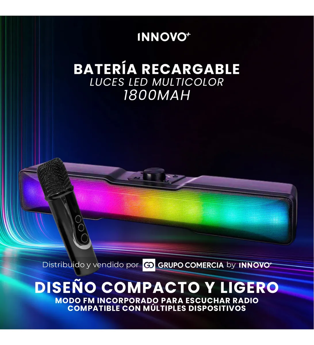 Este no es el típico parlante aburrido. Hemos diseñado el complemento perfecto para tus reuniones, sesiones de karaoke o tardes de películas. Con su diseño ultra compacto y ligero, la calidad de sonido te seguirá a donde vayas.
