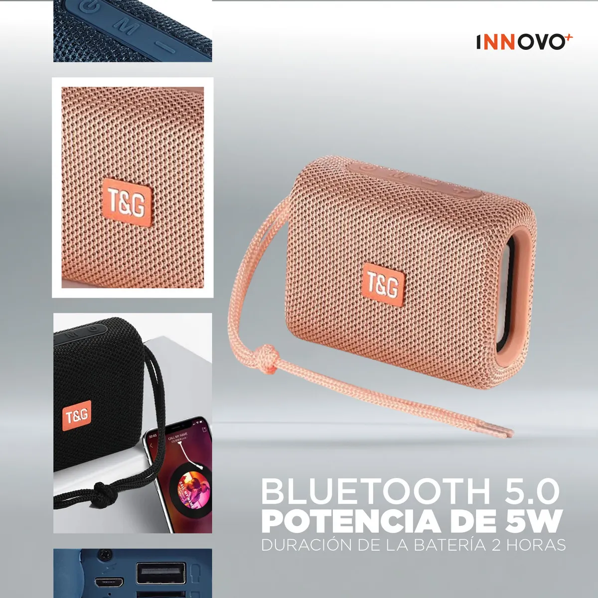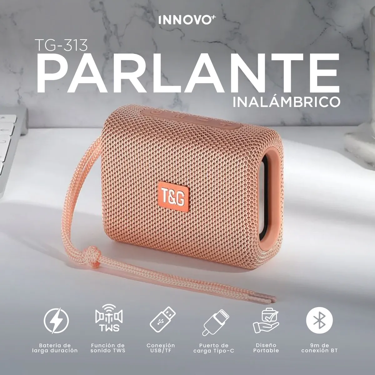 TONO ROSADO Parlante Inalámbrico TG-313 es el compañero ideal para tus viajes, oficina o reuniones al aire libre. No dejes que su tamaño te engañe: sus 5W de potencia y tecnología de sonido envolvente te sorprenderán.