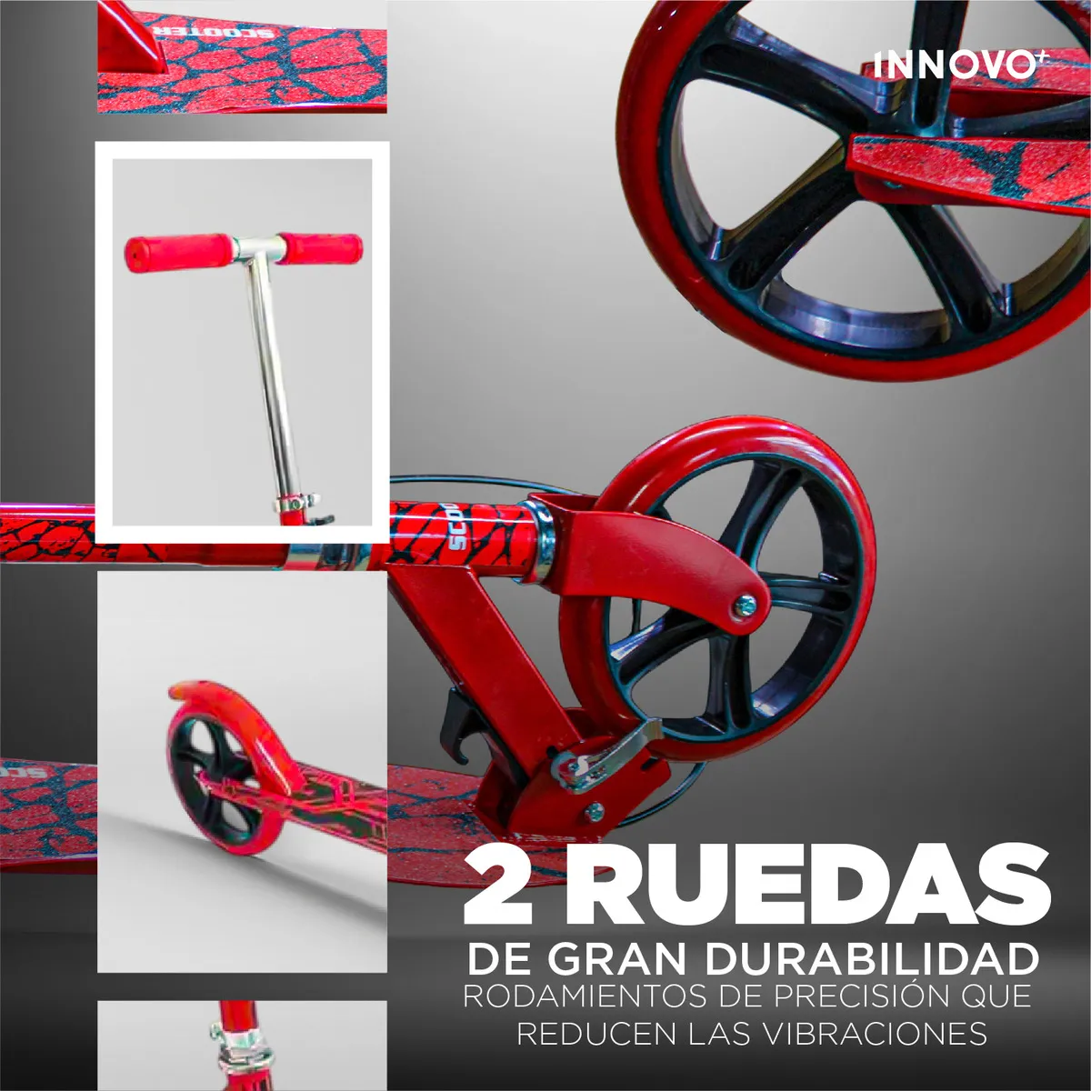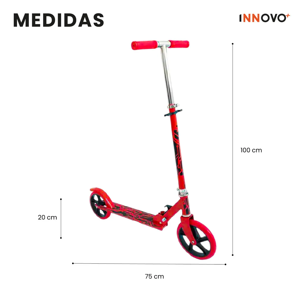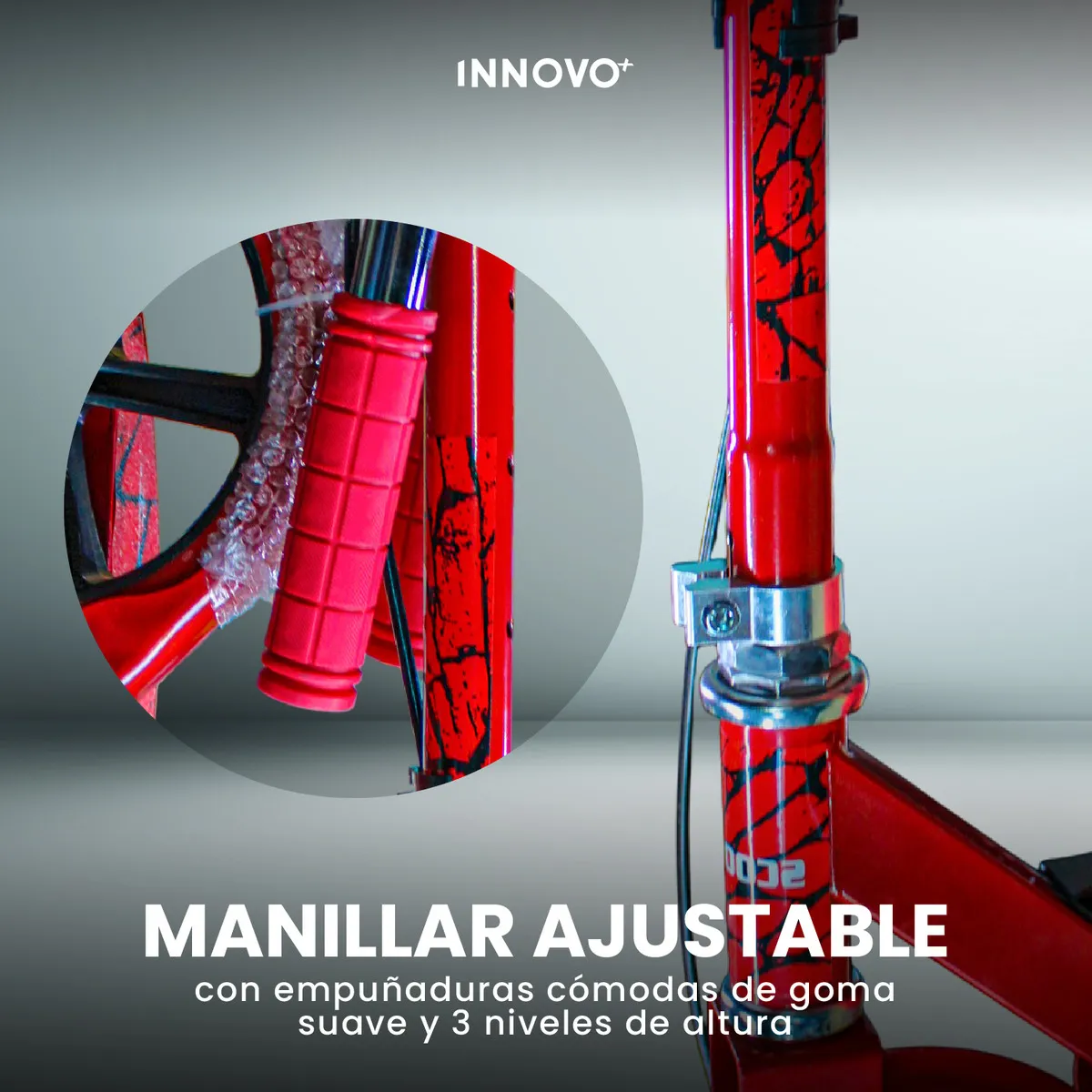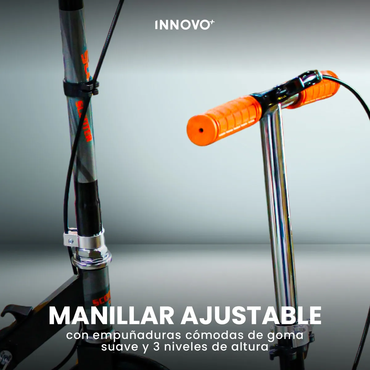 El Scooter Plegable Innovo+ está diseñado para brindar una experiencia estable, suave y cómoda gracias a su estructura resistente, ruedas de gran tamaño y manillar ajustable. Ideal para niños que aman jugar al aire libre, mejorar su equilibrio y disfrutar horas de entretenimiento.