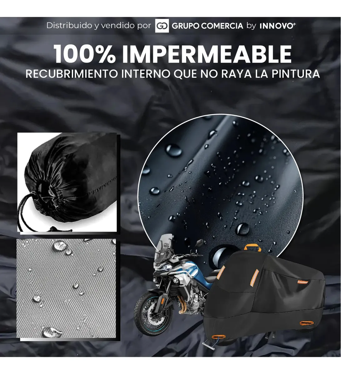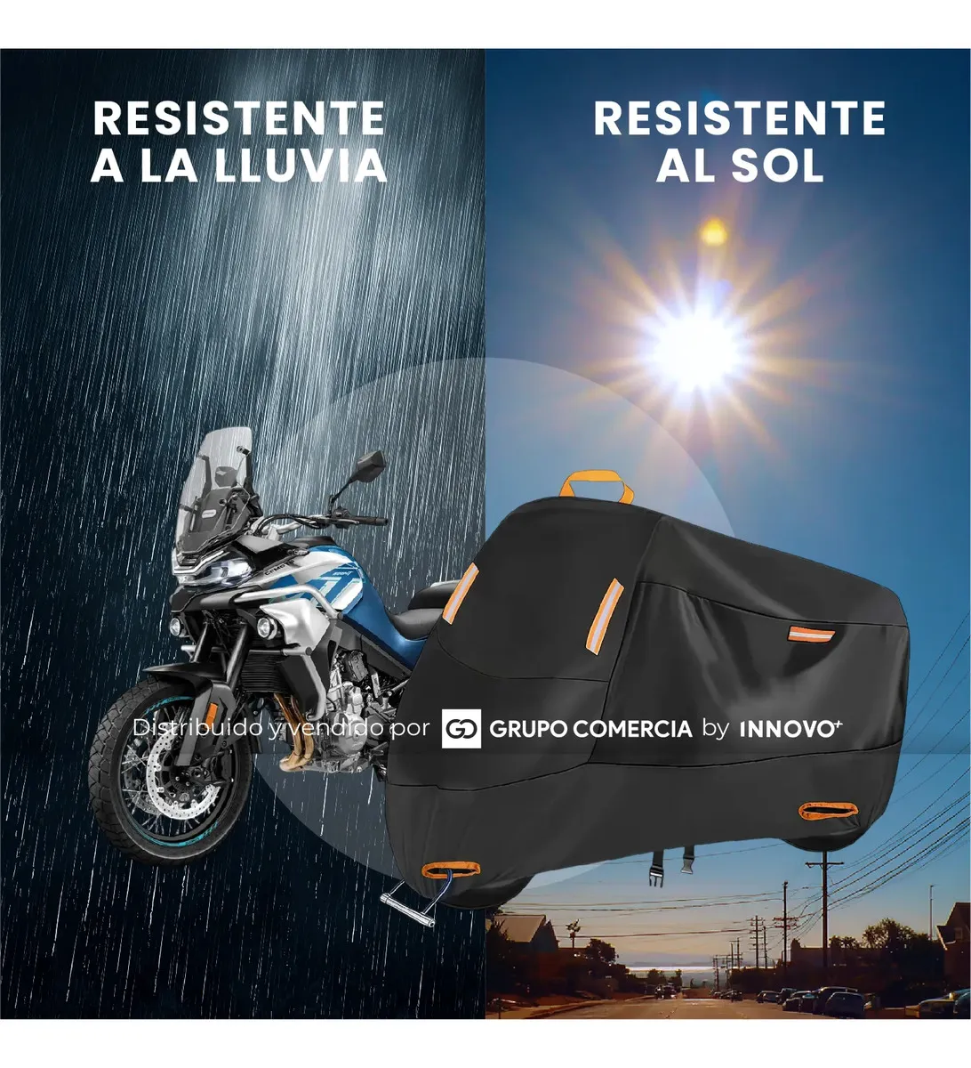 Gracias a su tecnología 100% Impermeable, esta funda actúa como un escudo impenetrable contra tormentas. Además, su capa con Filtro UV Pro evita que el sol debilite los plásticos, decolore la pintura o tueste el sillín de tu moto.