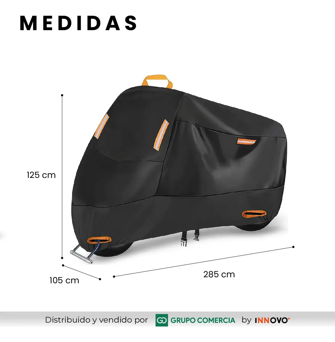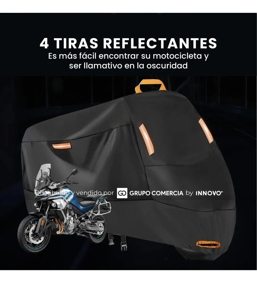 Visibilidad Nocturna: Equipada con 4 bandas reflectantes de alta intensidad para que tu moto sea visible incluso en los garajes o calles más oscuras.