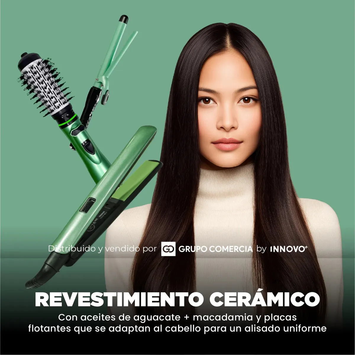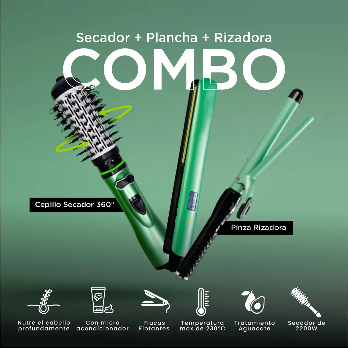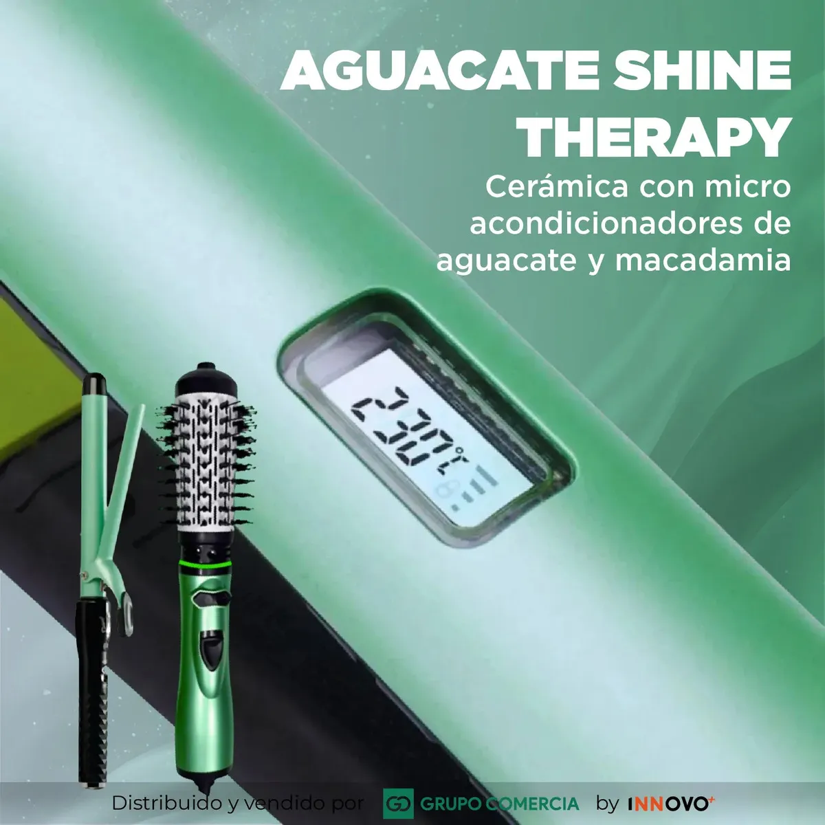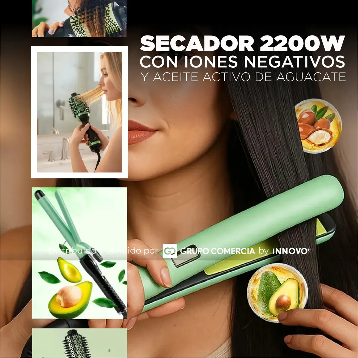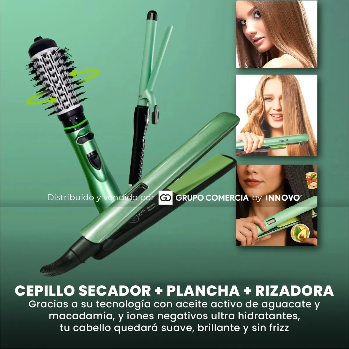 Plancha Cepillo Secador Rizadora Cerámica, Aguacate Y Macadamia