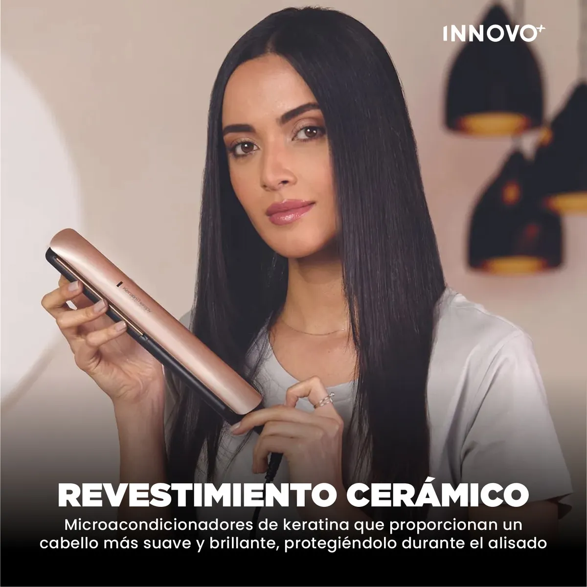 Deja atrás las planchas que resecan y queman. Con la nueva Keratin Therapy de Innovo+, transformas tu rutina de belleza en un tratamiento de salón. Su tecnología de vanguardia no solo alisa, sino que “alimenta” tu fibra capilar mientras trabajas.
