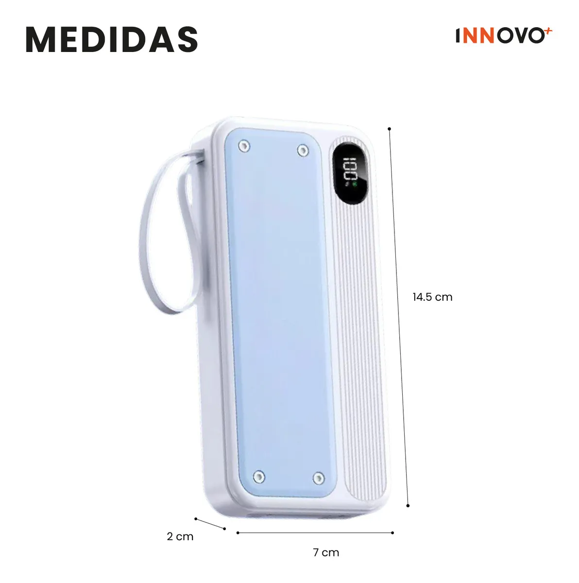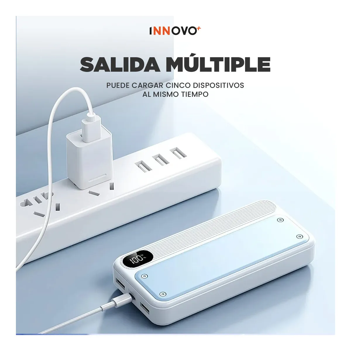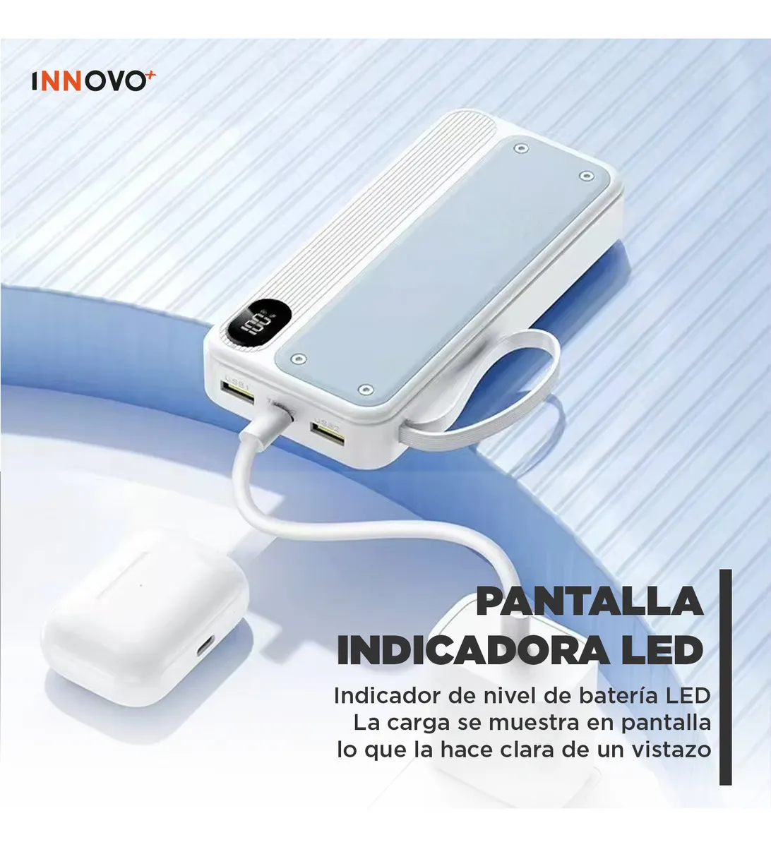 Te presentamos la evolución de la energía portátil. Este Power Bank no solo es una batería de alta capacidad, es tu centro de carga definitivo. Olvídate de los enredos y de llevar cables extra; aquí lo tienes todo integrado en un diseño elegante y compacto.