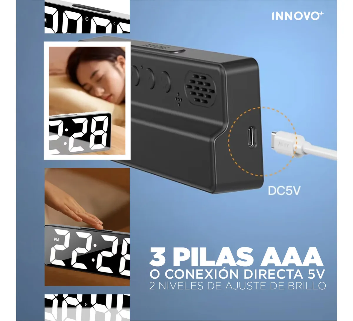¿Cansado de los despertadores aburridos? El Reloj LED Digital Innovo+ no es solo un reloj; es una pieza decorativa de vanguardia con acabado tipo espejo que combina tecnología, estilo y funcionalidad en un solo dispositivo.