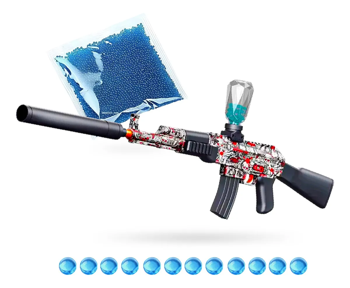Su batería recargable integrada ofrece un rendimiento prolongado, mientras su sistema de disparo automático proyecta esferas a una distancia de 10 a 15 metros, ideal para juegos en patios, zonas abiertas o competencias de puntería.