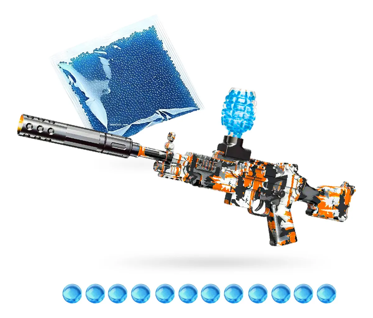 Incluye 10.000 balas de hidrogel seguras y reutilizables.