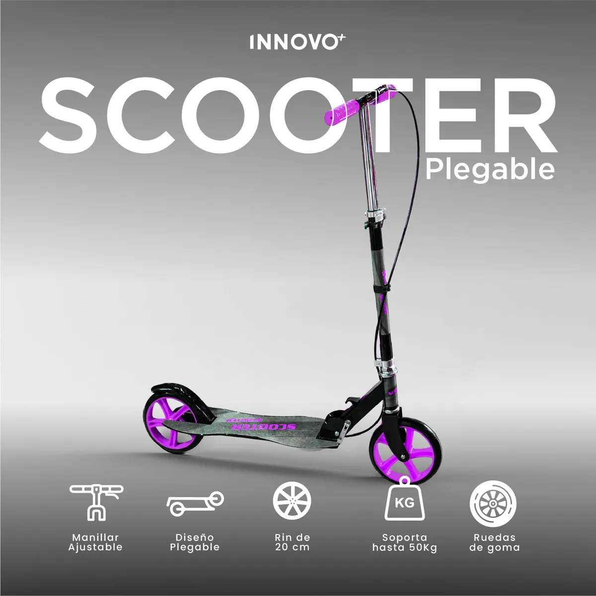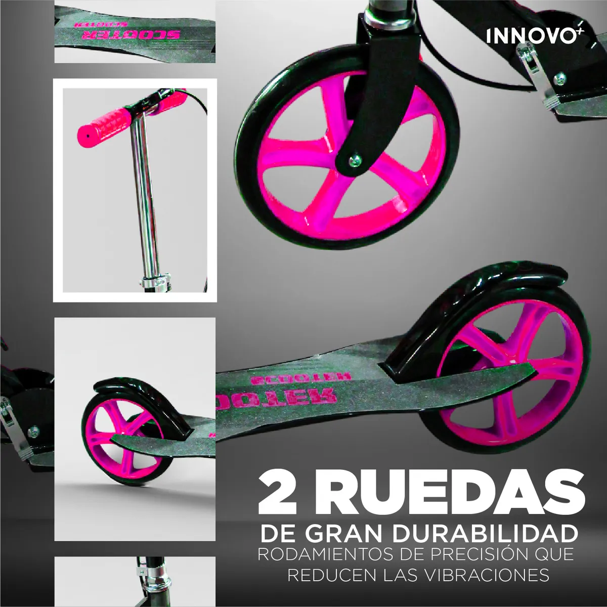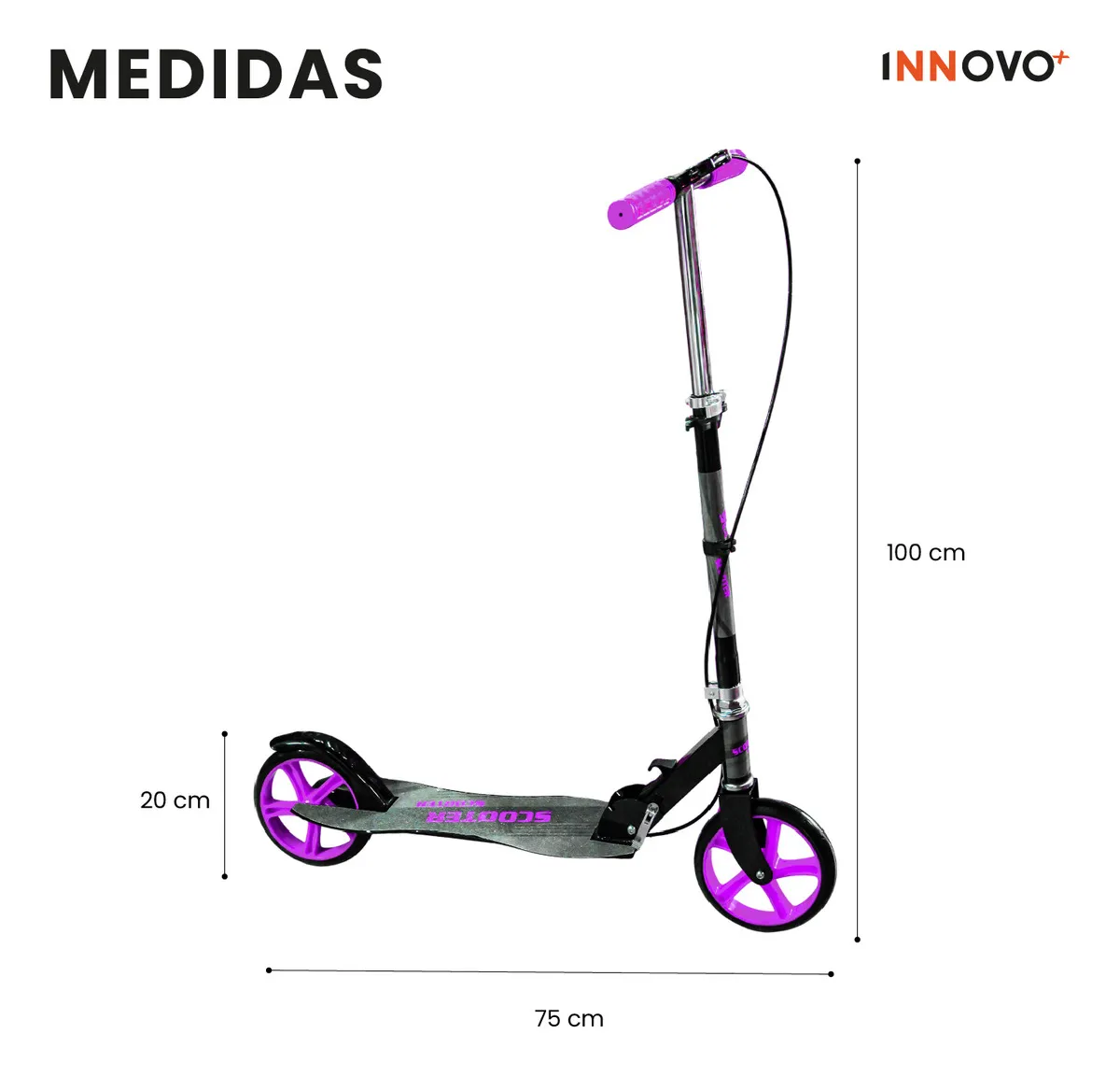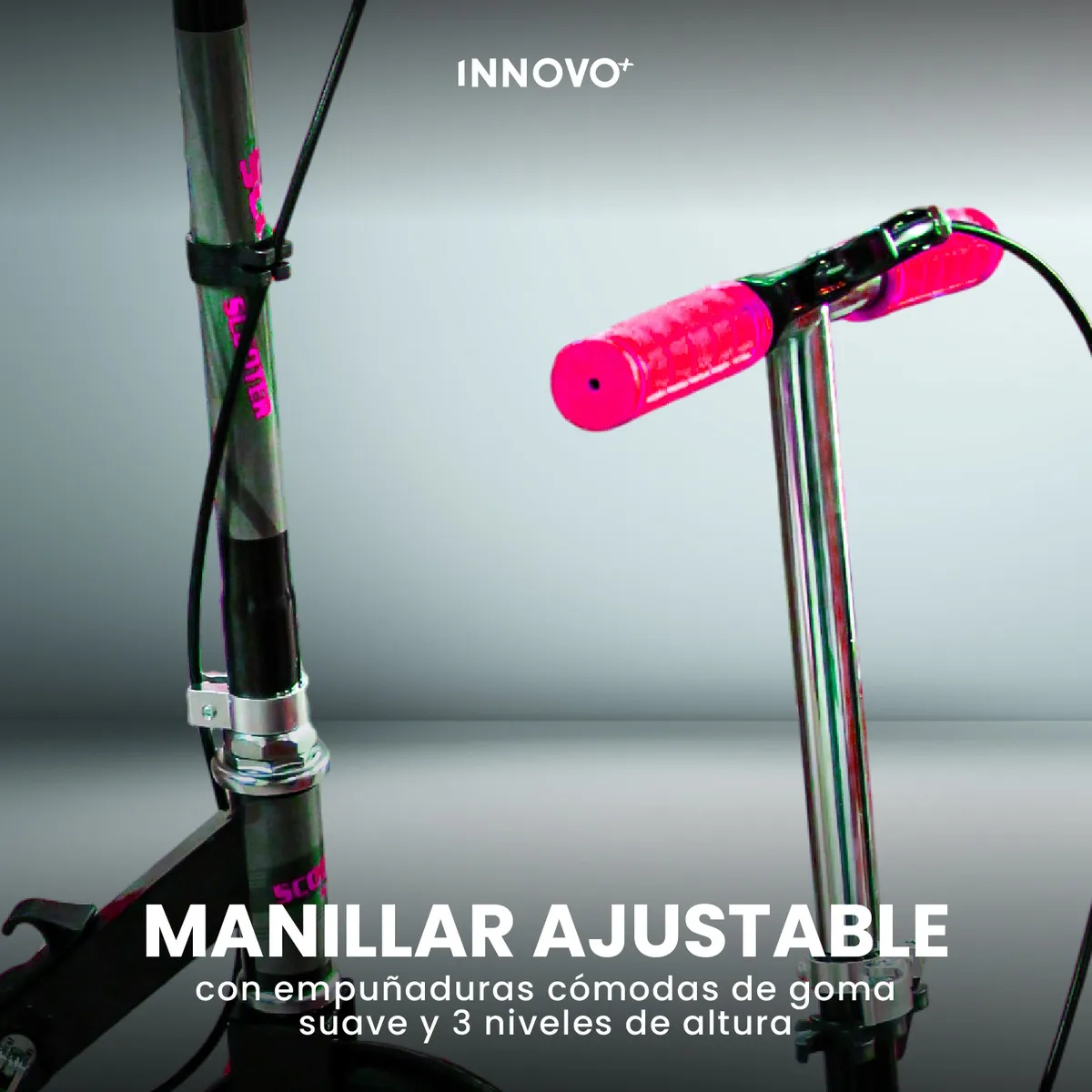 El Scooter Plegable Innovo+ está diseñado para brindar una experiencia estable, suave y cómoda gracias a su estructura resistente, ruedas de gran tamaño y manillar ajustable. Ideal para niños que aman jugar al aire libre, mejorar su equilibrio y disfrutar horas de entretenimiento.