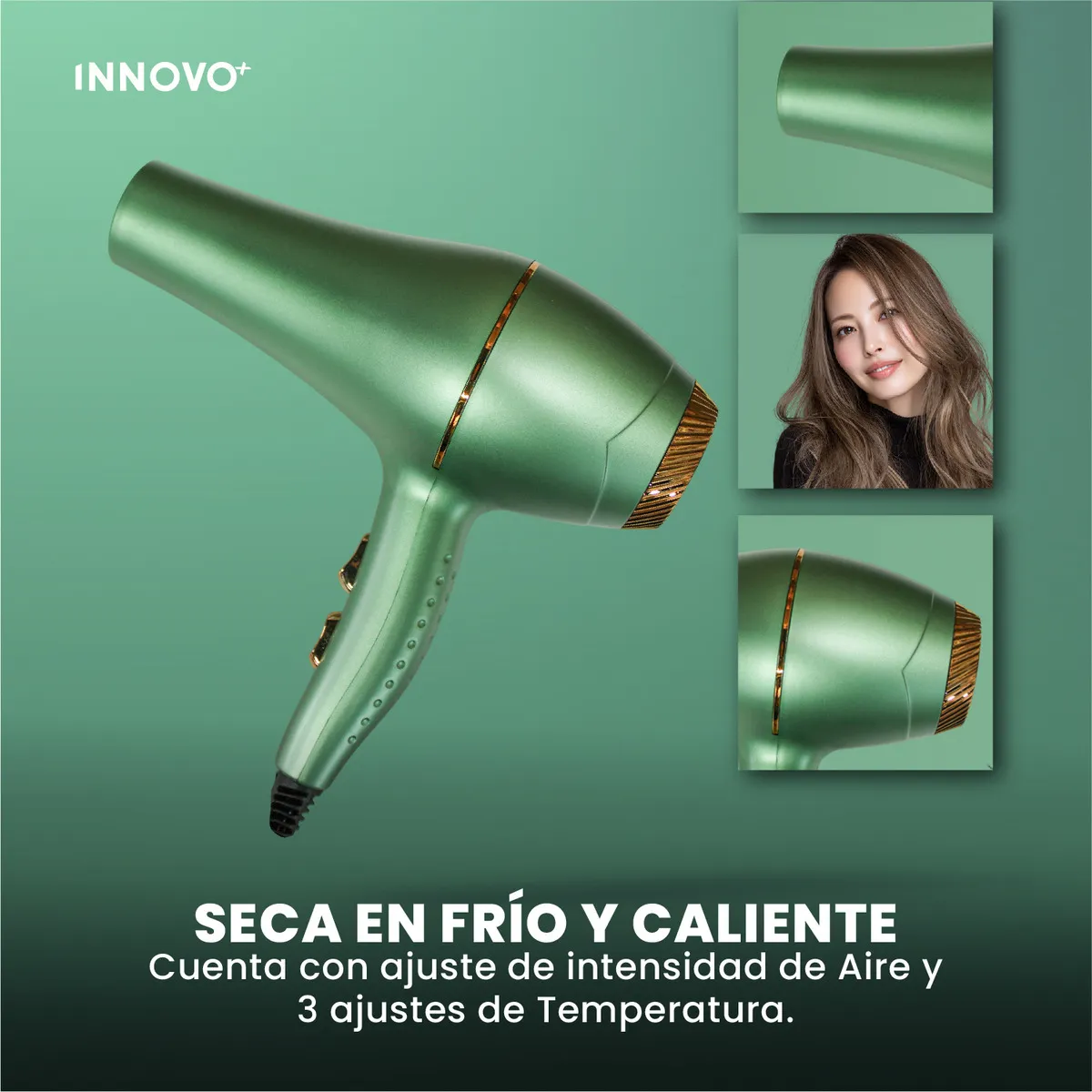 Control Total en tus Manos: Con 3 ajustes de temperatura y control de velocidad, tú decides el calor exacto que tu cabello necesita. Incluye golpe de aire frío para sellar el peinado.