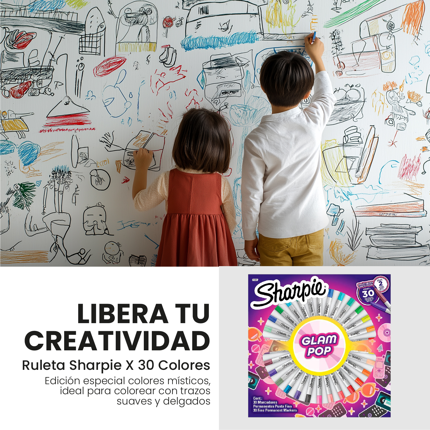 ¿Buscas el kit perfecto para tus manualidades, proyectos escolares o para organizar tu espacio de trabajo con color? La Ruleta Sharpie Glam Pop de 30 piezas es la herramienta definitiva para quienes no se conforman con lo ordinario. Con una gama inspirada en tendencias místicas y vibrantes, estos marcadores de punta fina te ofrecen trazos precisos, suaves y un secado ultra rápido que evita manchas.