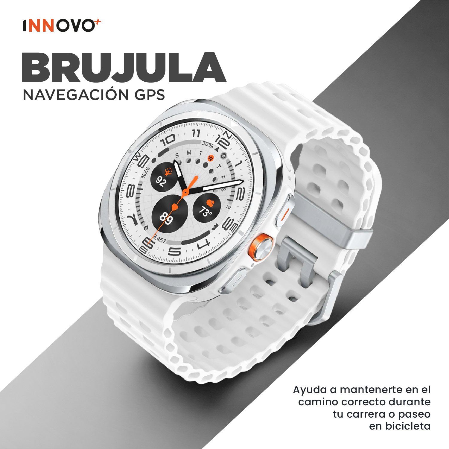 Incluye GPS brújula integrada, monitoreo de salud y deportes, llamadas Bluetooth y notificaciones en tiempo real. Ideal para deportistas y aventureros.
