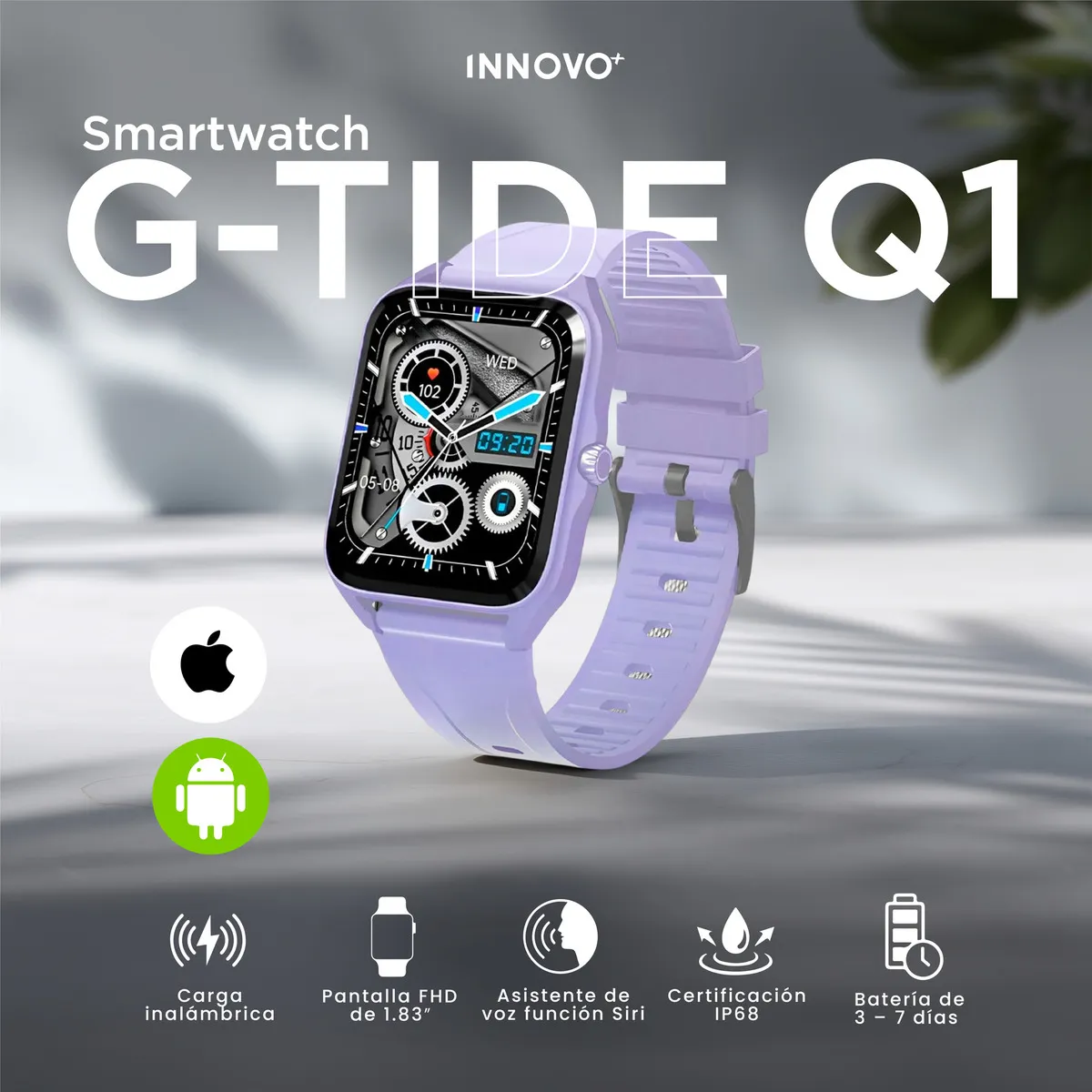 Smartwatch G-tide Q1 Pantalla 1.83 Pulso Extra Ios/android Sumergible Lila Gris