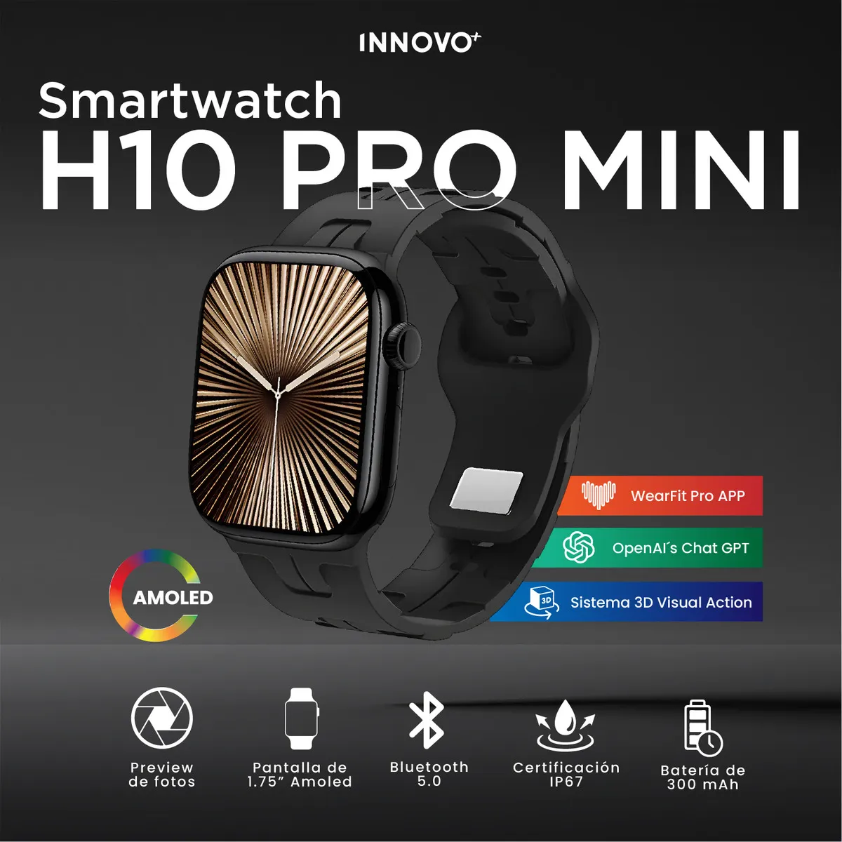 Da el salto a la nueva generación. El H10 Pro Mini integra el poder de OpenAI (ChatGPT) en tu muñeca, permitiéndote consultar información, redactar textos y resolver dudas al instante sin tocar tu teléfono.