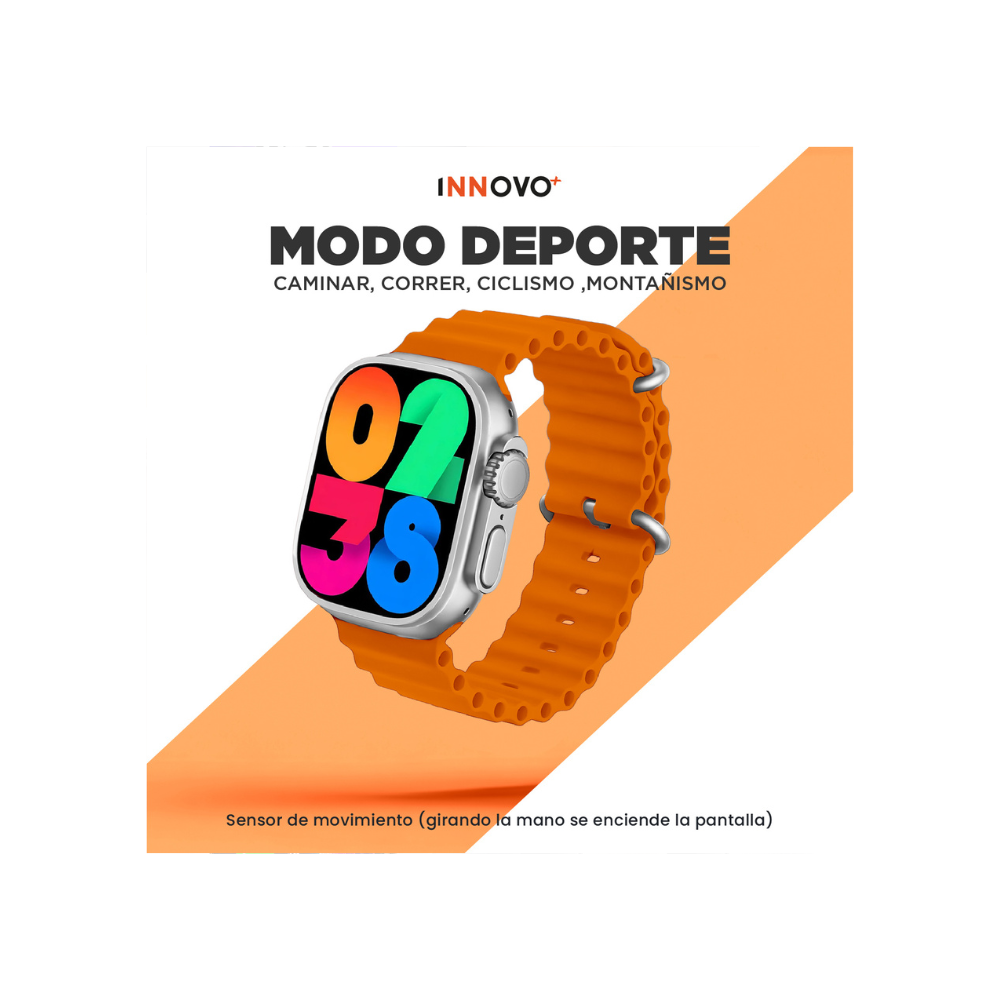 Descubre el IW10 Ultra Deportivo en color naranja, el smartwatch ideal para quienes buscan estilo, rendimiento y resistencia. Controla tu salud, recibe notificaciones, mide tu actividad física y luce un diseño premium tipo Ultra con correa deportiva ergonómica y hebilla reforzada.