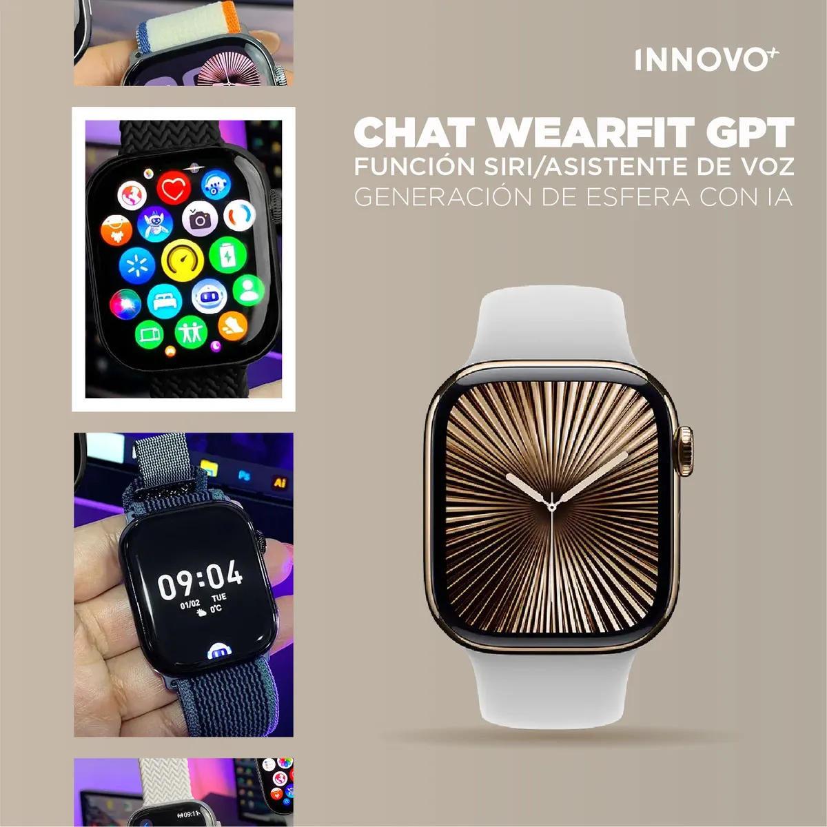 Inteligencia Artificial Real: Gracias a su integración con OpenAI (ChatGPT) y el Asistente AI Robot FIT, puedes hacer consultas complejas, generar esferas personalizadas con IA y recibir respuestas inteligentes directamente en tu reloj.